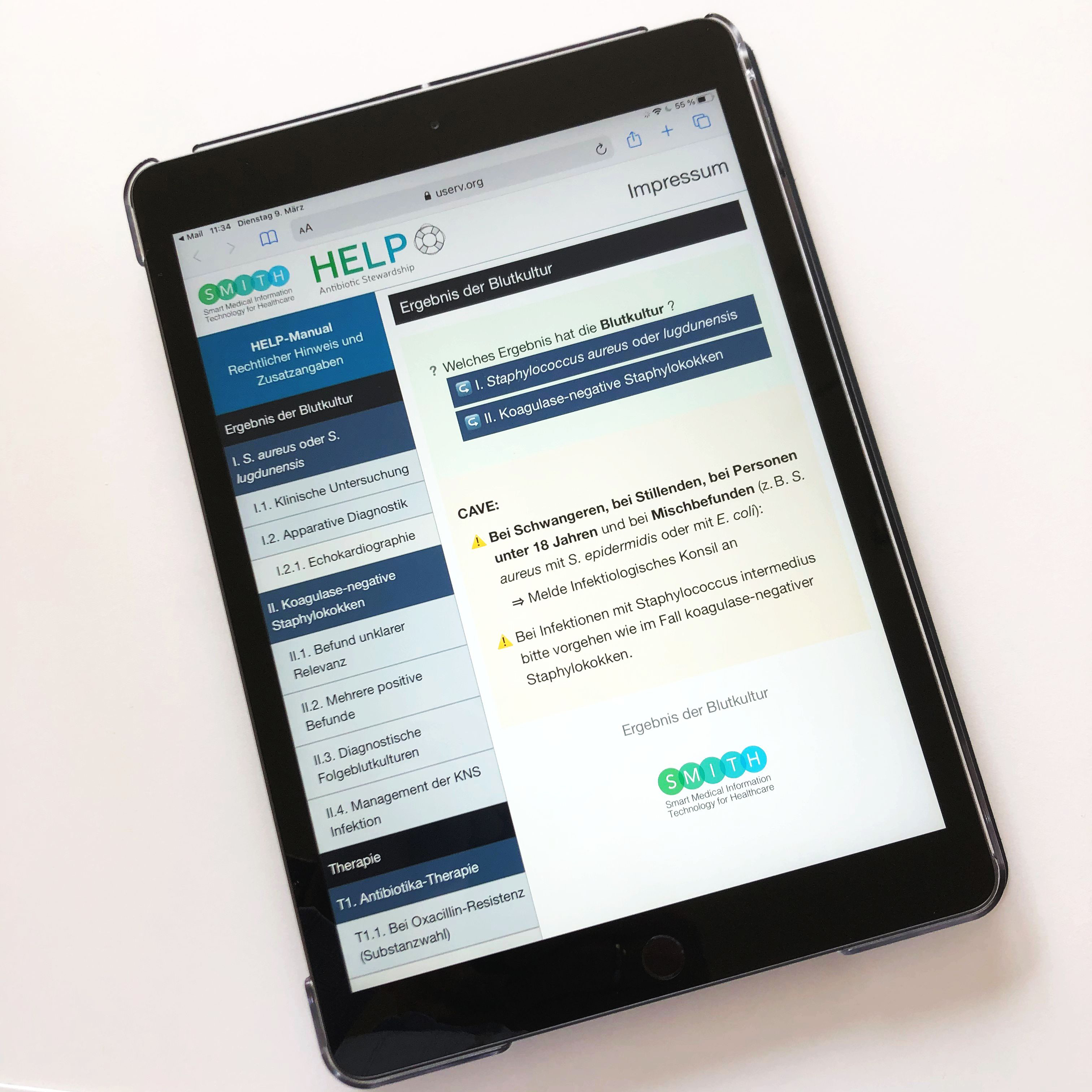 Die HELP-App erleichtert Ärztinnen und Ärzten in Kliniken den zielgerichteten Einsatz von Antibiotika und hilft so, die Resistenzbildung zu verringern. Die App wurde unter Federführung des Universitätsklinikums Jena im SMITH-Konsortium der Medizininformatik-Initiative entwickelt. Seit Ende Juni 2021 wird die mobile Anwendung in den Universitätskliniken Aachen, Essen, Halle, Jena und Leipzig im klinischen Alltag genutzt und belegt, dass die Vernetzung der Datenintegrationszentren an den Kliniken funktioniert.