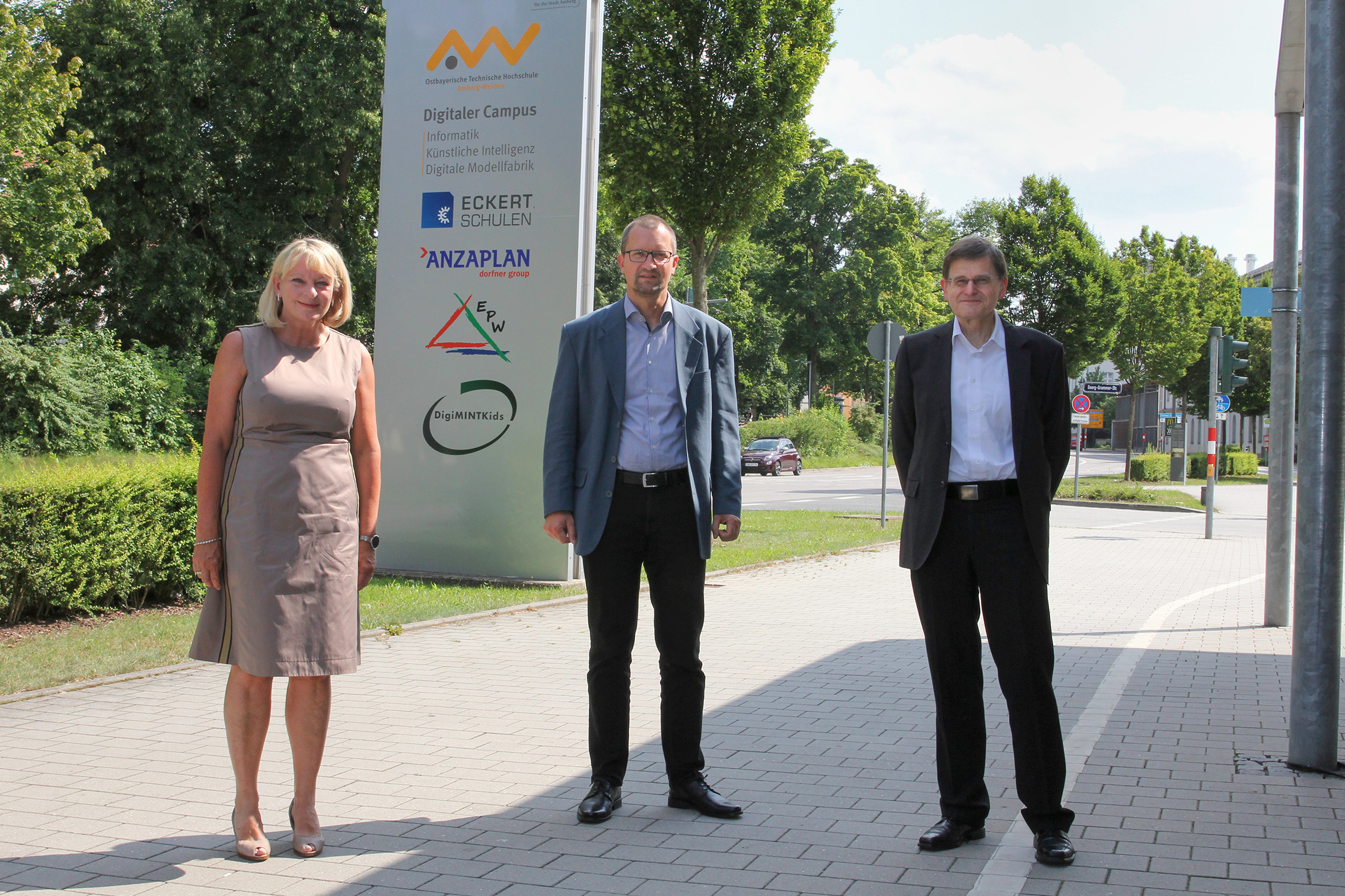 Künstliche Intelligenz und Digitalisierung – seit Jahren hat die OTH Amberg-Weiden im Rahmen des Kompetenzzentrums Digitaler Campus nicht nur ihr Studienangebot im Bereich der Digitalisierung und der Künstlichen Intelligenz enorm weiterentwickelt, sondern auch die Kooperationen mit Unternehmen und Einrichtungen im Umfeld von Industrie 4.0 stark ausgebaut. So wurden die Bachelorstudiengänge „Künstliche Intelligenz“ und „Künstliche Intelligenz international“ sowie der Masterstudiengang „Künstliche Intelligenz“ eingeführt, aber auch in den Studiengängen „Industrie-4.0-Informatik“, „Medieninformatik“, „Elektro- und Informationstechnik“, „Applied Research in Engineering Sciences“ und „IT und Automation“ werden verstärkt KI-Inhalte gelehrt und praktisch erprobt. Zudem werden in zahlreichen Abschlussarbeiten und Forschungs- und Transferprojekten mit Kooperationspartnern verschiedene Ansätze und Einsatzmöglichkeiten von Künstlicher Intelligenz umgesetzt. „Der Transfer von Forschungsergebnissen und KI-Kompetenz durch die Hochschule ist dabei von besonderer Bedeutung, um die Innovationskraft und Wettbewerbsfähigkeit der Region zu stärken und nicht zuletzt Arbeitsplätze zu erhalten und aufzuwerten“, betont Prof. Dr. Andrea Klug, Präsidentin der OTH Amberg-Weiden.