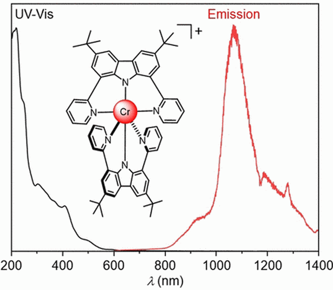Für vielfältige Anwendungen, von der faseroptischen Telekommunikation bis zu bildgebenden Verfahren für die Biomedizin werden im nahen Infrarot-Bereich (NIR) leuchtende Substanzen benötigt. Ein Schweizer Forschungsteam hat jetzt erstmals einen Chrom-Komplex entwickelt, der Licht im begehrten längerwelligen NIR-II-Bereich emittiert. In der Zeitschrift Angewandte Chemie stellt das Team das zugrundeliegende Konzept vor: Eine drastische Änderung der elektronischen Struktur am Chrom durch speziell angepasste, das Chrom umfassende Liganden.