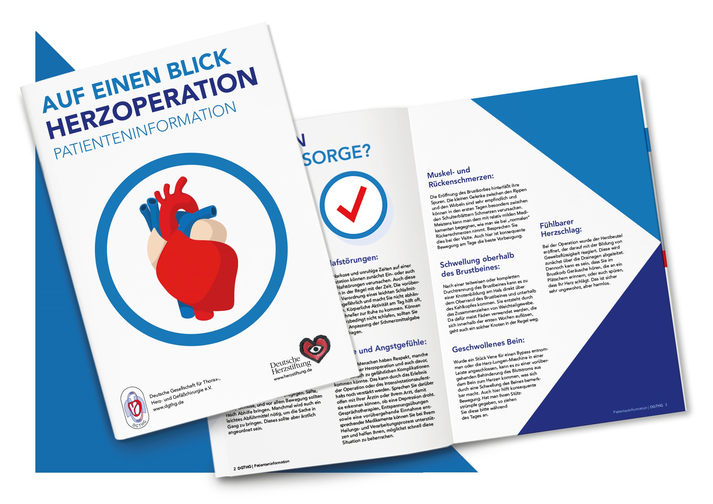 Kurz, prägnant, verständlich: Die neue Informationsbroschüre „Auf einen Blick – Herzoperation“ der Deutschen Gesellschaft für Thorax,- Herz- und Gefäßchirurgie (DGTHG) in Zusammenarbeit mit der Deutschen Herzstiftung richtet sich an Patientinnen und Patienten, bei denen zur Behandlung ihrer Herzerkrankung eine Herzoperation notwendig ist oder war.