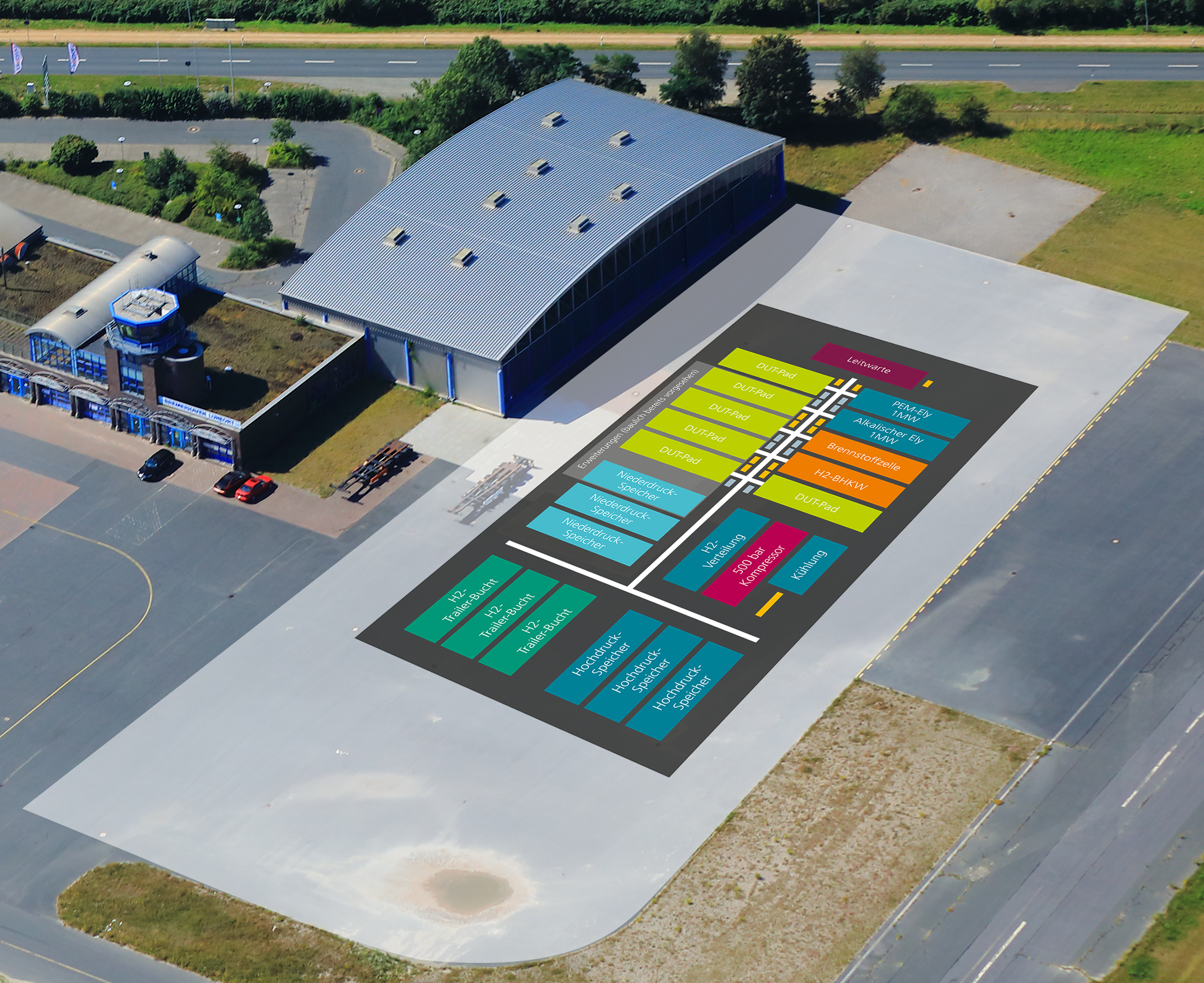 Following the approval of funding for the Hydrogen Lab Bremerhaven at the former Luneort airfield, the project work started behind the scenes first of all. The first major step was to commission a general contractor to design specific layout plans for the facilities. This is a fundamental prerequisite for any necessary permits. The connection of the test field to the virtual grid of Fraunhofer IWES’ Dynamic Nacelle Testing Laboratory (DyNaLab) large-scale testing facility and the generation of the electrolysis energy from wind power is a unique selling point.