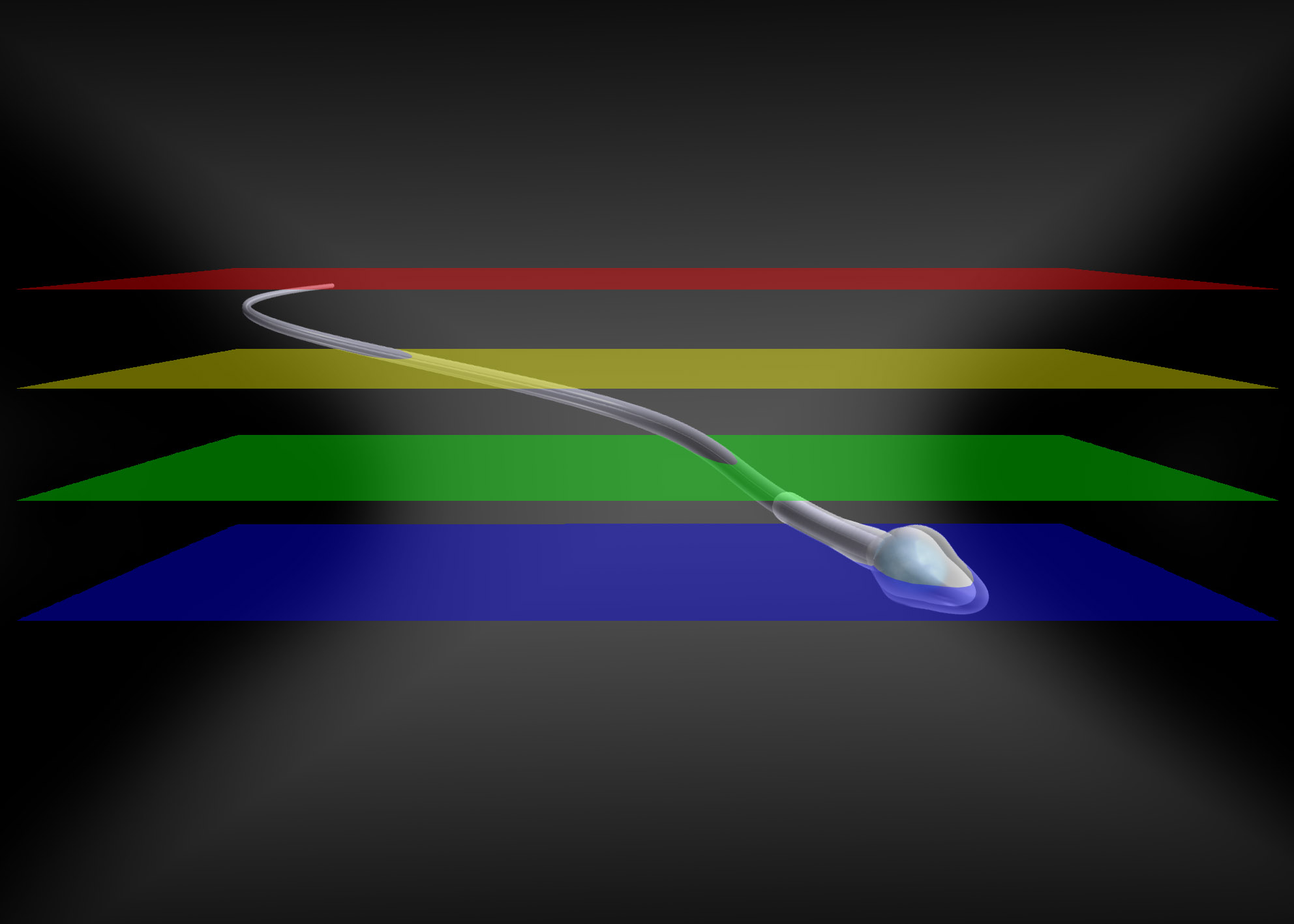 Die neu entwickelte Methode besteht aus einem sogenannten 3D-Rekonstruktionsalgorithmus. Er ermöglicht es, eine multifokale Bildgebung mit einem größeren Sichtfeld anzuwenden und so kugel- und fadenförmige Strukturen schnell und genau zu verfolgen. Dazu ist es nicht notwendig, die Proben zu markieren. Mit der neuen Methode zeichneten die Forscher erstmalig über eine längere Zeit in 3D das Schlagmuster von einzelnen freischwimmenden Spermien auf; gleichzeitig beobachteten sie die Schwimmbahn. Zudem konnten sie erstmalig eine dreidimensionale Karte des Strömungsprofils um das schlagende Spermium aufzeichnen.