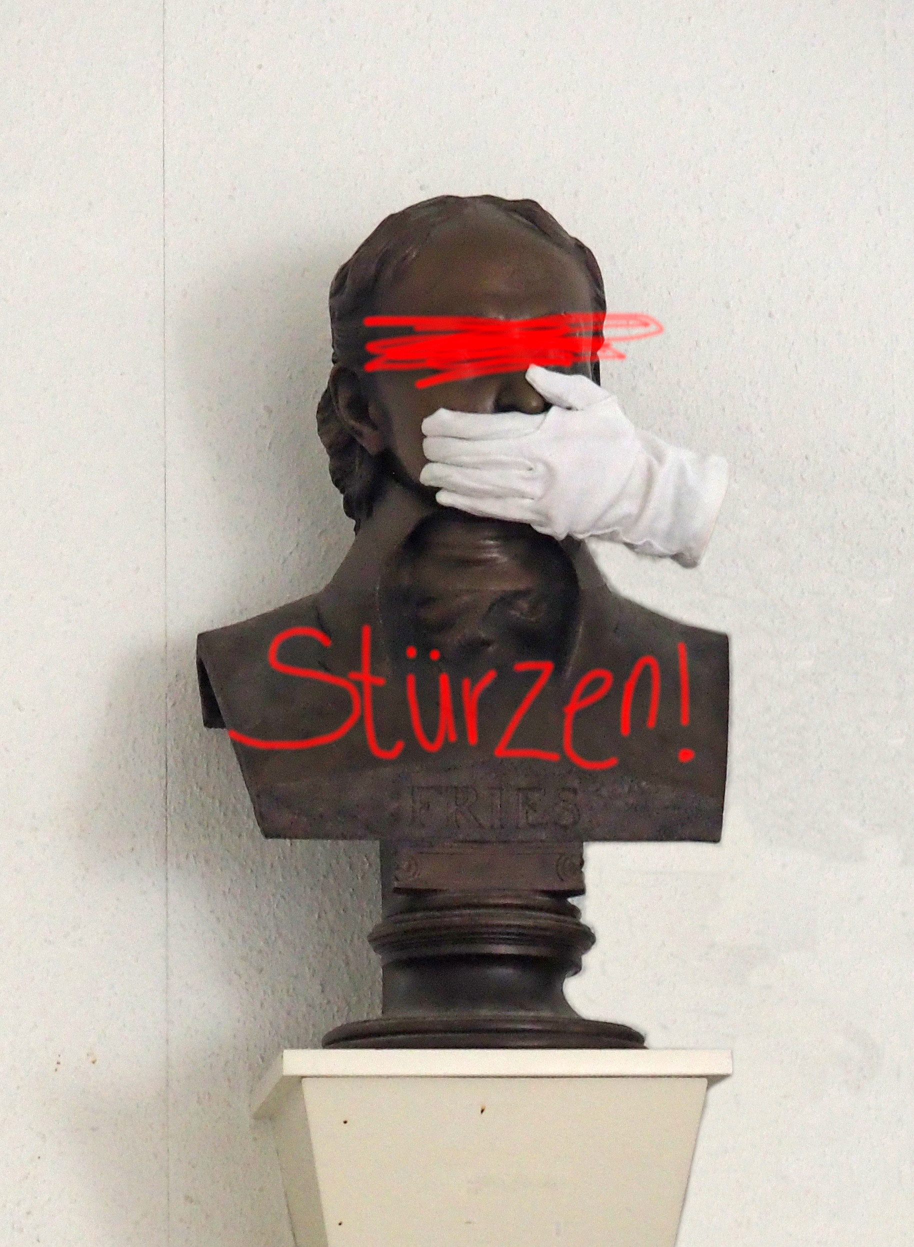 Der Philosoph Jakob Friedrich Fries (1773-1843) zählt heute zwar nicht zu den Klassikern der Philosophie, gilt jedoch als einflussreicher Vertreter des deutschen Kantianismus bzw. Nachkantianismus. Gleichzeitig trat Fries, der viele Jahre in Jena lehrte, als Autor einer antisemitischen Hetzschrift hervor. In seiner 1816 publizierten Polemik „Ueber die Gefährdung des Wohlstandes und Charakters der Deutschen durch die Juden“ finden sich deutlich judenfeindliche Äußerungen und sogar Aufrufe zur Vernichtung, Vertreibung, Stigmatisierung. Dennoch wird Fries in Jena in vielfältiger Weise geehrt. So gibt es im Norden der Stadt einen Friesweg, und ein Denkmal in der sogenannten „Via triumphalis“ am Fürstengraben erinnert an den Philosophen. Im Hörsaal Z1 des Instituts für Philosophie wurde zudem noch im Oktober 2000 eine Fries-Büste aufgestellt. Auf Initiative Studierender wurde die Büste gut 20 Jahre später – im Februar 2020 – verhüllt. Auf der gerade freigeschalteten komplexen Website www.erinnerngestalten.uni-jena.de wird nun die Debatte um Fries aufgearbeitet, weitergeführt und öffentlich gemacht. Einmischung ist ausdrücklich erwünscht.