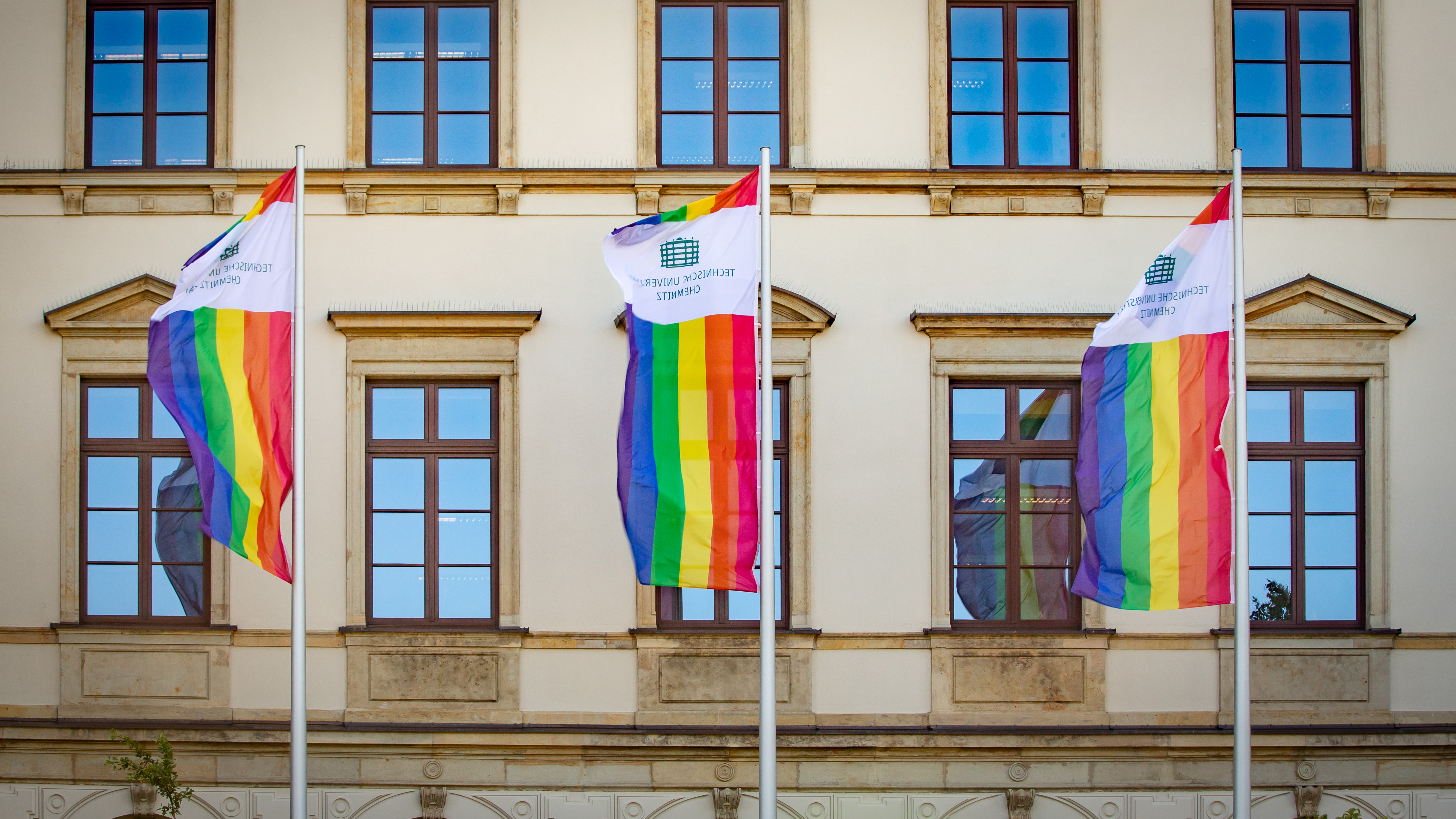 TU Chemnitz hisst Regenbogenflaggen und färbt Logo zum Christopher Street Day