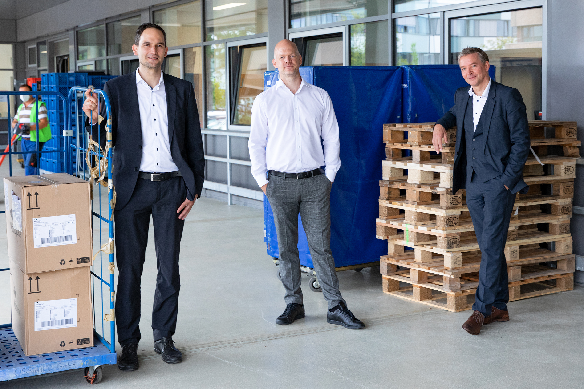 „Mit dem Logistikzentrum an einem zentralen Standort und mit der neuen Maschinenausstattung ist es uns gelungen, die logistischen Abläufe zu standardisieren und zu optimieren“, betont Andreas Kohlhase. Für Synergien sorgt dabei auch die sogenannte Cross-Docking-Zone. Das ist eine Fläche, auf der Waren aus den verschiedenen Bereichen des Logistikzentrums zusammengeführt und dann zu bestimmten Zeiten per Transportwagen zum selben Empfänger gebracht werden – auch damit ist die MHH logistisch gut auf die Zukunft vorbereitet.