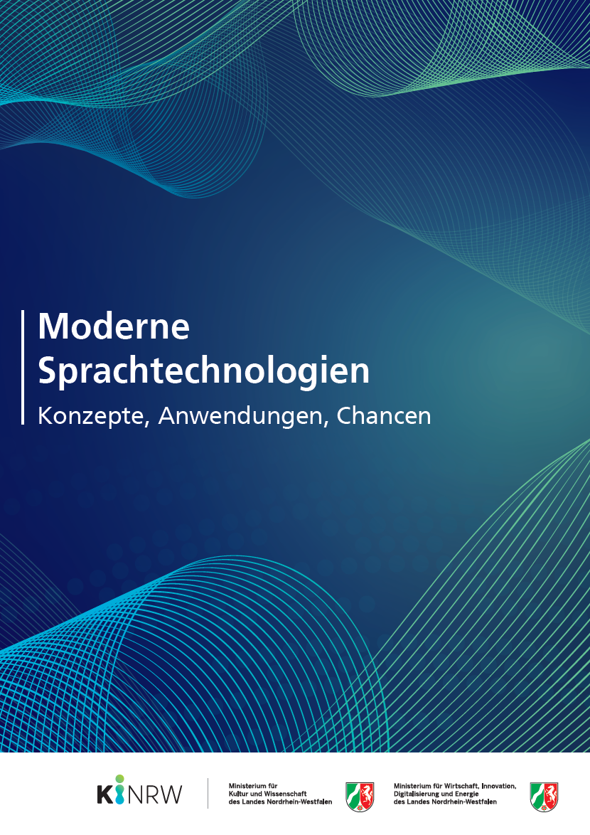 Was bedeutet Natural Language Processing, was verbirgt sich hinter GPT-3 und wie funktionieren eigentlich Chatbots? Antworten auf diese Fragen liefert die neue Studie »Moderne Sprachtechnologien – Konzepte, Anwendungen, Chancen« von KI.NRW. In einer umfassenden Einführung zeigen Mitarbeitende der nordrhein-westfälischen KI-Kompetenzplattform und Wissenschaftler des Fraunhofer-Instituts für Intelligente Analyse- und Informationssysteme IAIS, wo intelligente Sprachsysteme schon heute zum Einsatz kommen, wie diese genau funktionieren und welche wirtschaftlichen Chancen damit verbunden sind. Zielgruppe sind Unternehmen, die das Potenzial dieser Technologien für sich erschließen wollen.