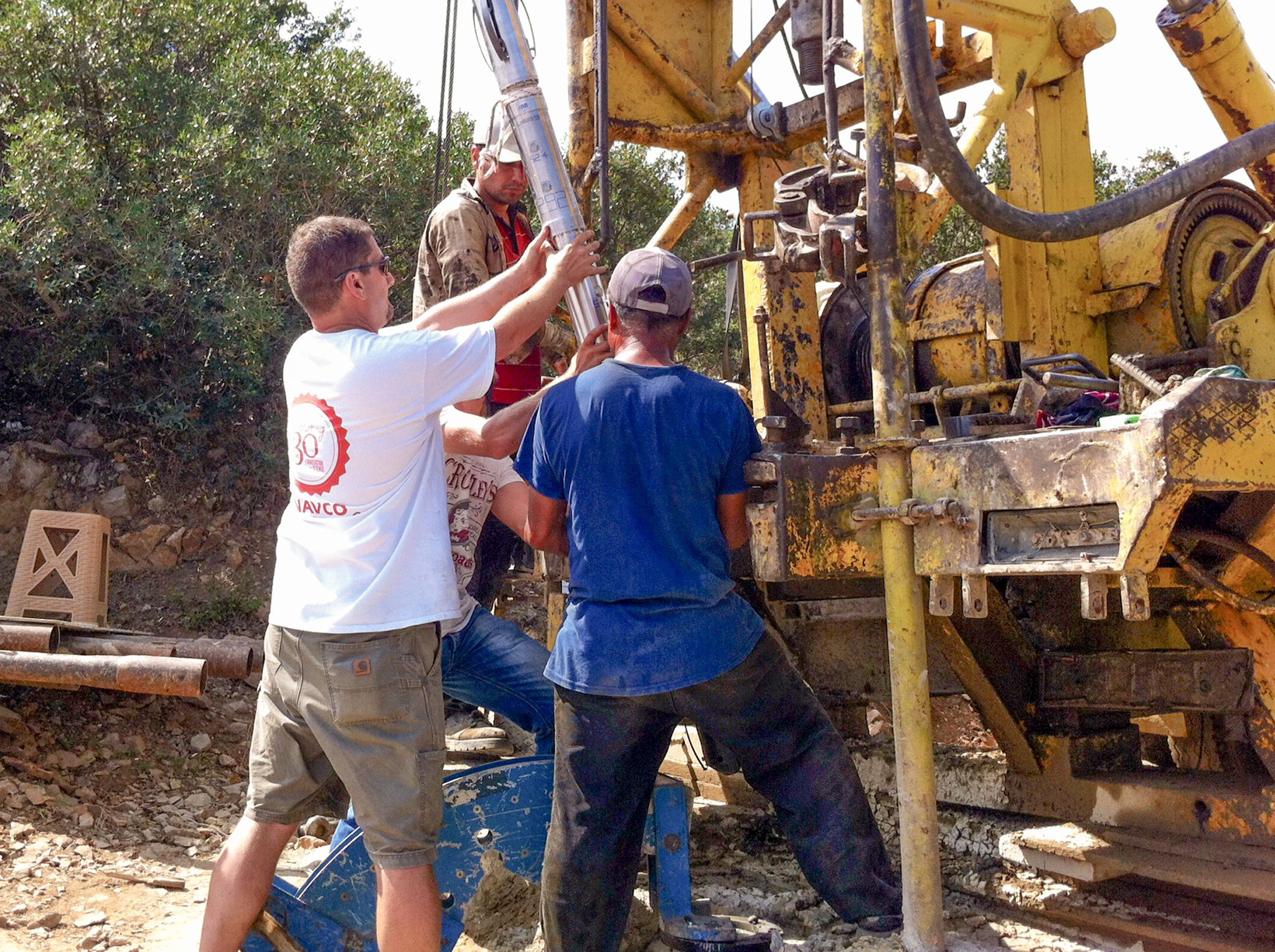 Einbau eines Bohrloch-Strainmeters in einer GONAF-Bohrung in der Türkei. Diese Geräte können komplementär zu klassischen Seismometern auch langsame Deformationen im Untergrund bis runter zur Dimension eines Atomdurchmessers (10 hoch -10 m) messen. (Foto: Marco Bohnhoff, GFZ)