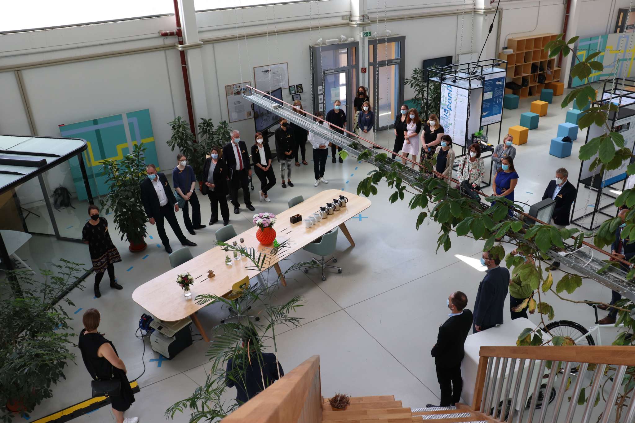 Nach dem Statement der Ministerin wurde die neue Webseite der Präsenzstellen, www.praesenzstellen.de, vorgestellt. Dort finden sich Informationen zu Angeboten und Terminen rund um die Themen Wissenschaft, Forschung und Studium in Brandenburg. Anschließend berichtete jede der insgesamt sieben Präsenzstellen über sich und ihre aktuellen Themen, Projekte und Veranstaltungen. Für das Jahr 2022 ist beispielsweise ein Science Slam mit Mitgliedern und Angehörigen der Brandenburgischen Hochschulen als nächstes Gemeinschaftsprojekt in Planung. Anschließend begab sich Ministerin Schüle auf einen Rundgang durch die Präsenzstelle Luckenwalde, welche neben den Angeboten einer Präsenzstelle ebenso einen Makerspace, einen Showroom als Präsentationsfläche für Projekte aus der Wissenschaft und Forschung sowie einen Coworking-Space beinhaltet.
