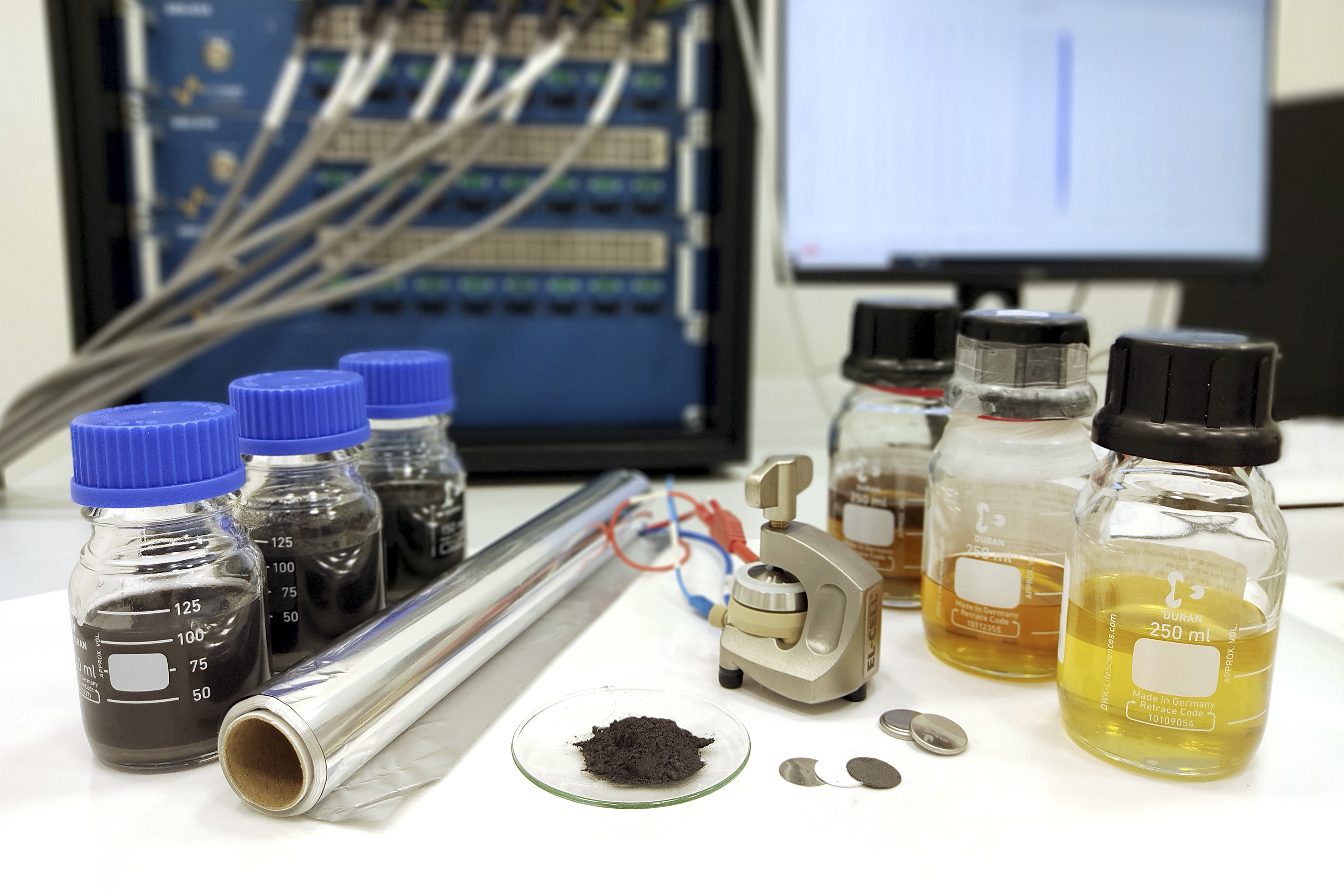 Ulrike Wunderwald, Leiterin der Arbeitsgruppe Batteriematerialien des Fraunhofer IISB, berichtet über die vielversprechenden Entwicklungen: „In unseren Laborsystemen wurden mit Graphitpulver als Kathode bereits Energiedichten von 135Wh/kg in Bezug auf die Aktivmasse gezeigt. Die Batterie kann in einer Zeit von weniger als 30 Sekunden voll ge- und entladen werden. Der Prozess ist reversibel und wir haben mit den Laborzellen bereits über 10.000 Zyklen mit einer Ladeeffizienz von mehr als 90 % erreicht. Unsere neuesten Ergebnisse zeigen, dass auch noch mehr als doppelt so viele Ladezyklen möglich sind. Das liegt ganz deutlich über dem, was etablierte Lithium-Ionen-Batterien ausweisen. Unsere Zellen funktionieren dabei unter normalen Umgebungsbedingungen und wir arbeiten bereits mit anwendungs¬relevanten Zellkonzepten wie Knopfzellen und Pouch-Zellen. Diese Zellchemie hat ein enormes Potential.“