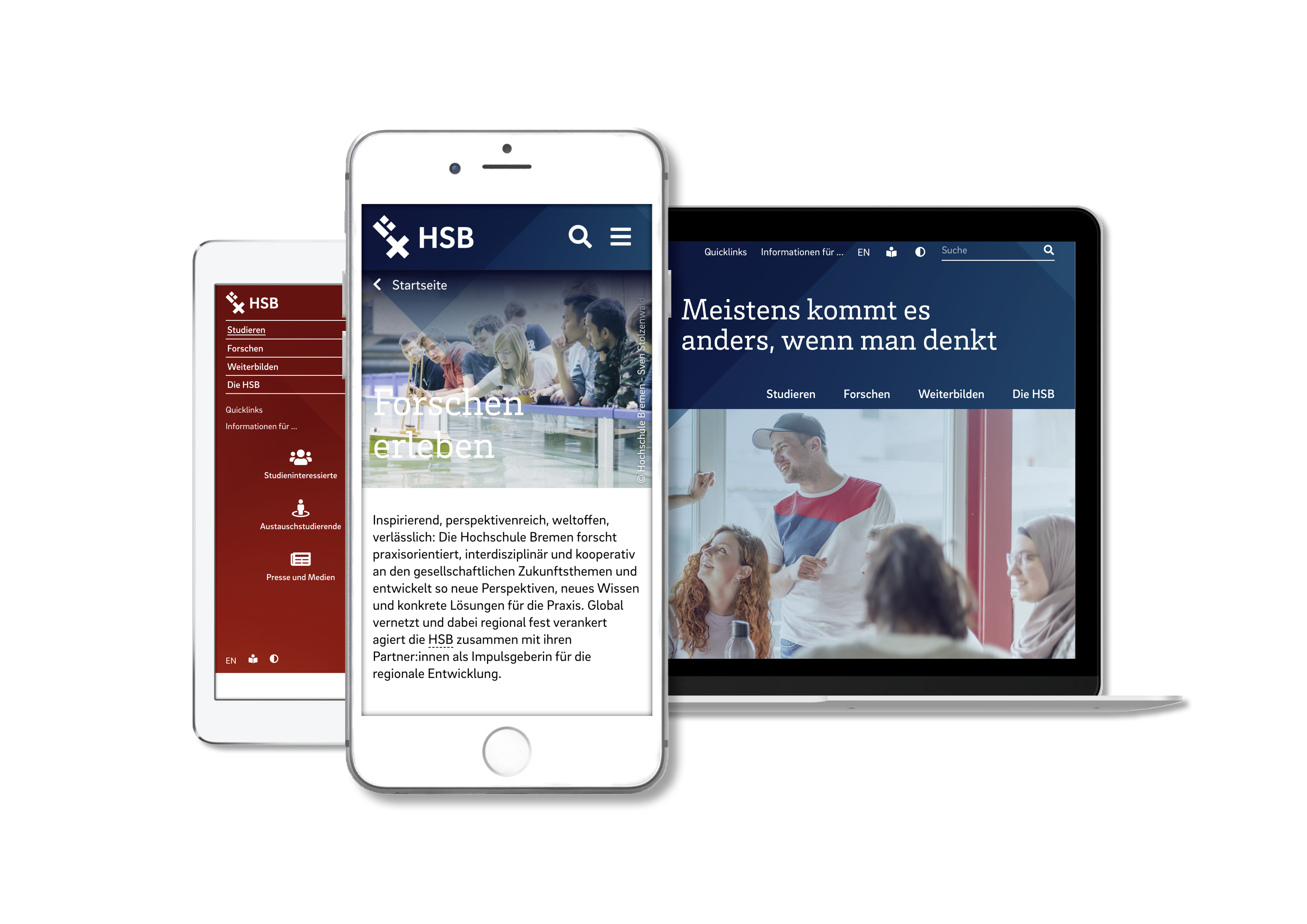 Aufgeräumt, nutzungsorientiert und auf jedem Gerät leicht zu bedienen – so präsentiert sich die neue Website der Hochschule Bremen