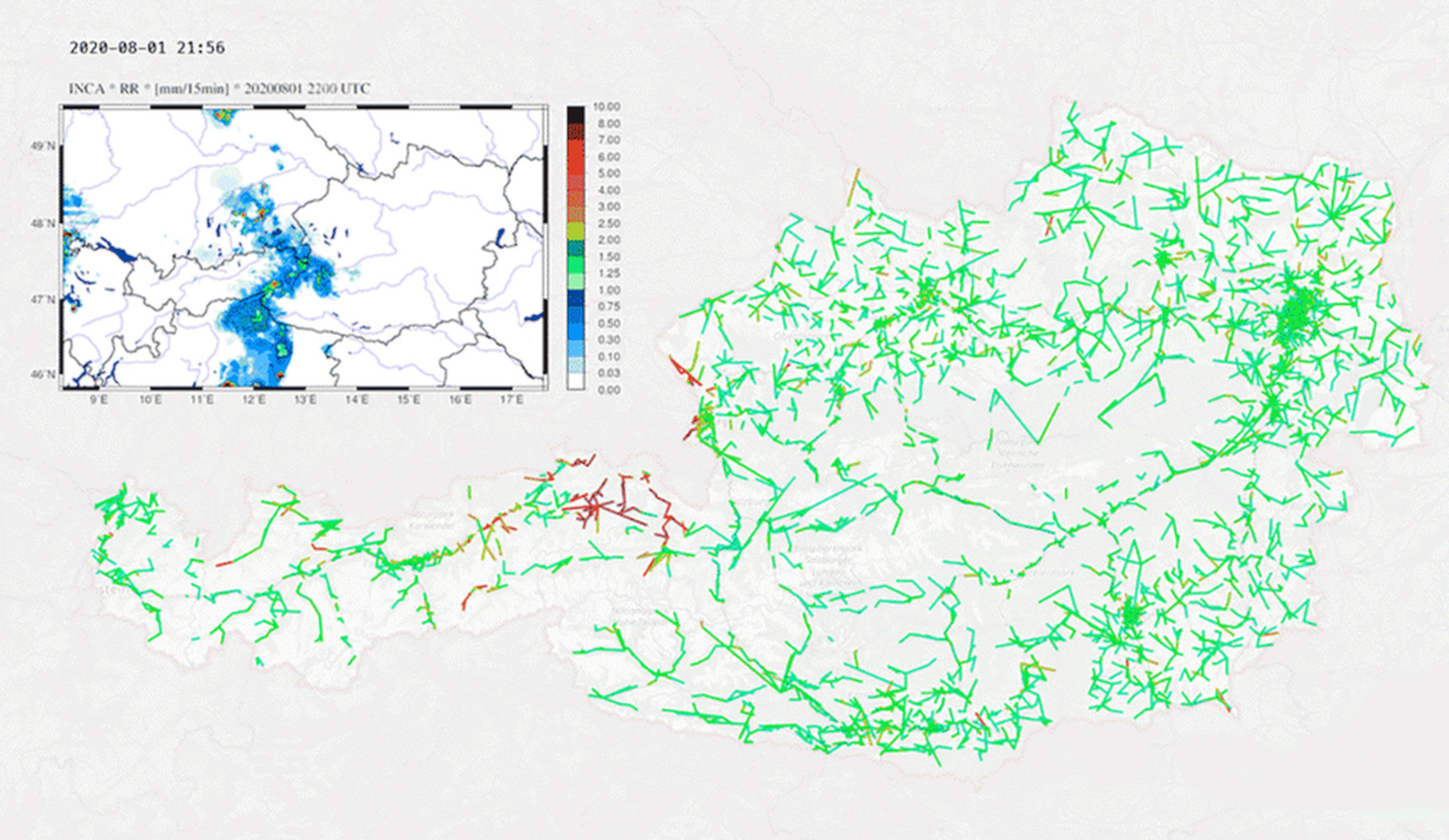 Im Zuge des Projekts werden derzeit auch Niederschlagsdaten und Richtfunkdaten zu den Unwettern im Juli bzw. August ausgewertet. Durch die Analyse will das Projektteam abschätzen, ob sich mit den Mobilfunkdaten bessere Vorhersagen machen lassen.