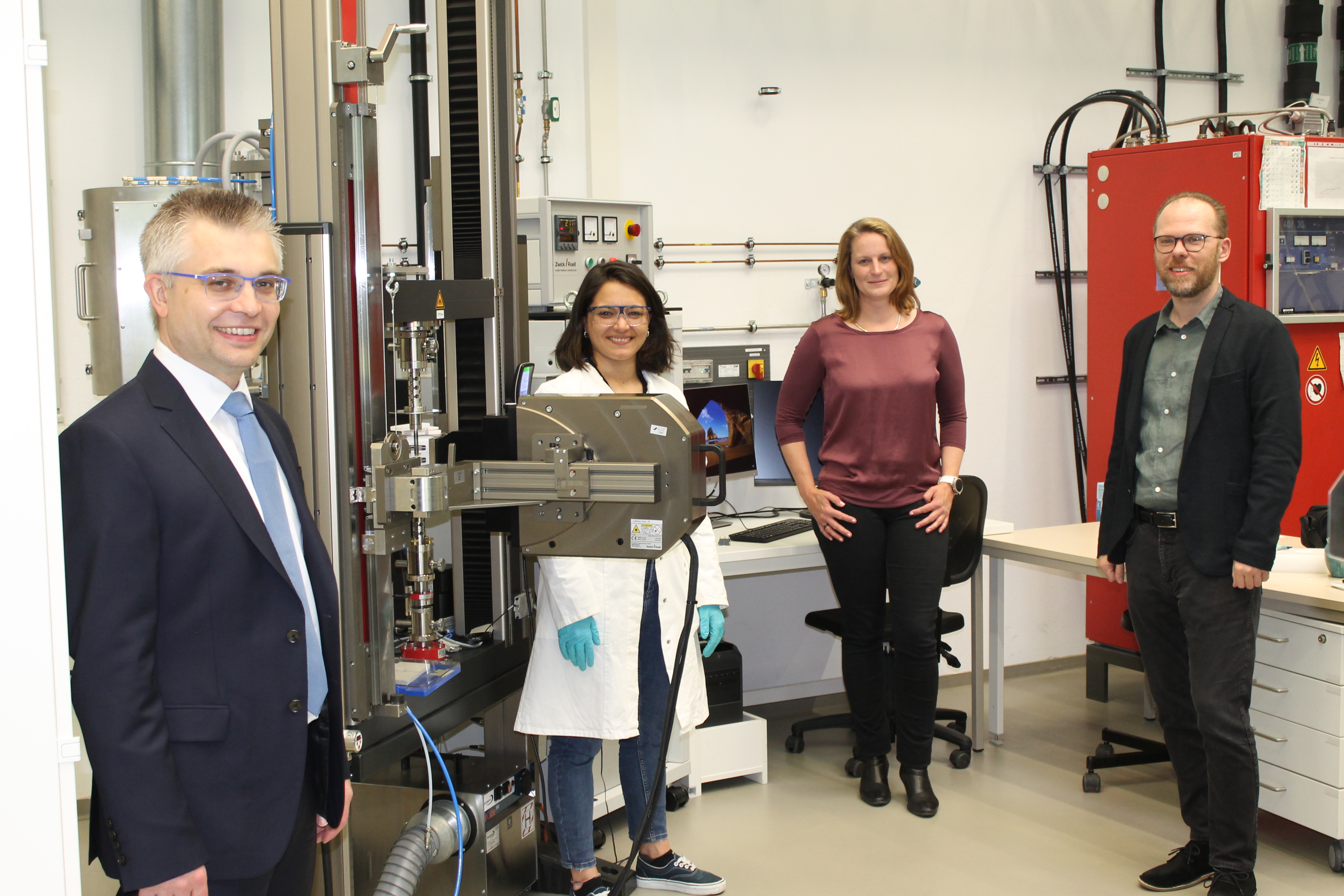 The upcoming work in Bayreuth will use experimental research methods such as light and scanning electron microscopy, X-ray diffraction, and non-destructive pulse excitation technology. Mechanical parameters on the ceramic thin films will be determined at up to 850 degrees Celsius by ring-on-ring tests and tensile tests using a laser extensometer. The research group's new, unique high-temperature universal testing machine, which was funded by the German Research Foundation (DFG) and the TechnologieAllianzOberfranken at the end of 2020, will be used for this purpose. In addition to the experimental work, simulations will be conducted using the finite element method to analyse the service life of HTEL cells. Particularly regarding the industrial implementation of the HTEL stacks, the Chair of Ceramic Materials will collaborate with numerous partners from academia and industry in the joint project "HTs: HTEL Stacks - Ready for Gigawatt". The overall organisational management of the collaborative project is in the hands of Sunfire GmbH in Dresden.