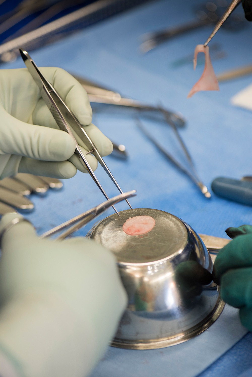 Eine mögliche Alternative könnte die Reparatur des Gelenkknorpels mithilfe von gezüchtetem Knorpelgewebe sein. Hierfür entnimmt das Forschungsteam in Zusammenarbeit mit orthopädischen und plastischen Chirurginnen und Chirurgen des Universitätsspitals Basel eine Gewebeprobe aus der Nasenscheidewand des jeweiligen Patienten, kultiviert die darin enthaltenen Knorpelzellen und züchtet daraus eine Knorpelschicht, die anschliessend chirurgisch ins Kniegelenk eingesetzt wird.
