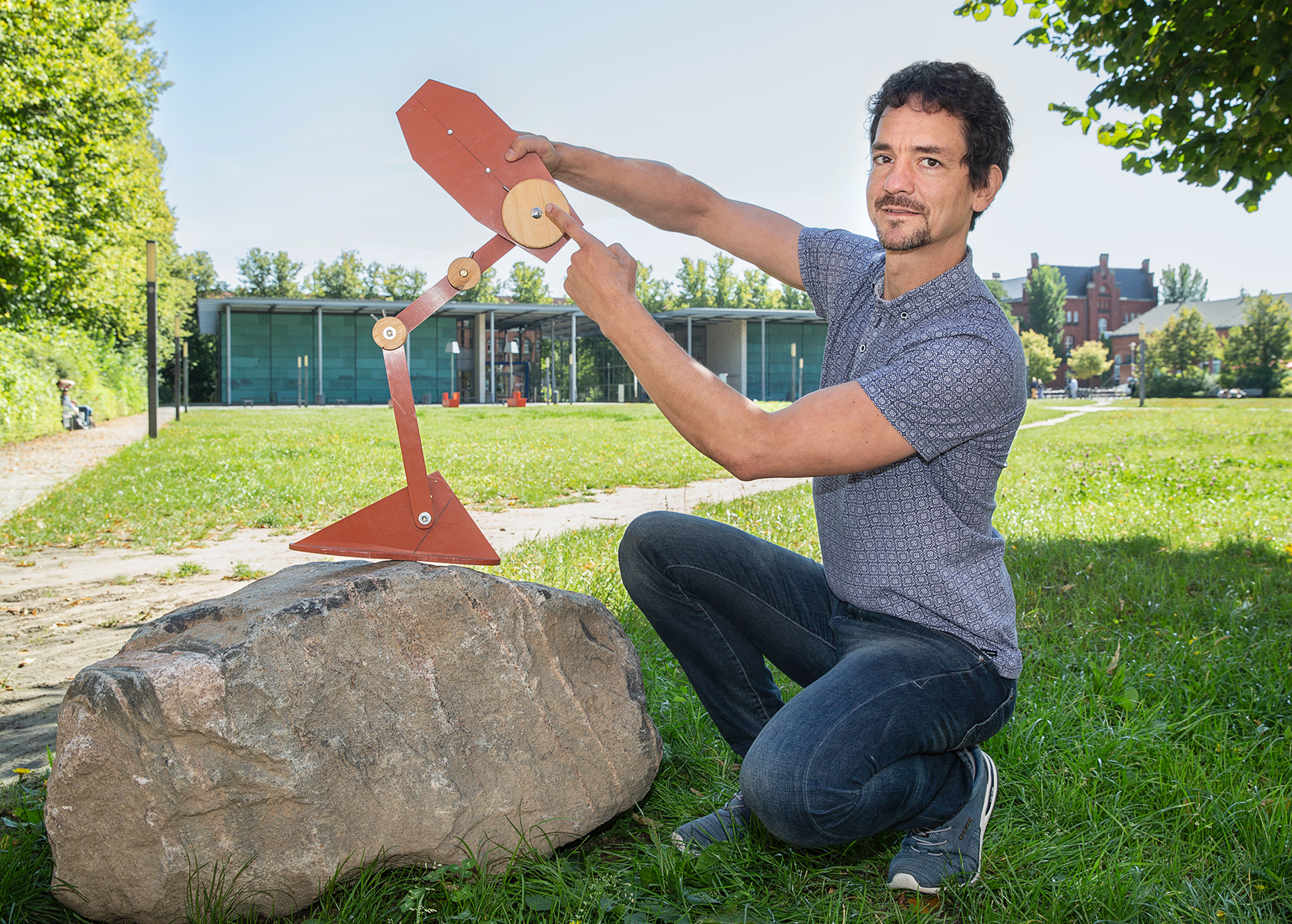 Christian Rode, der in zwei Bands spielte und heute begeistert ist vom brasilianischen Paartanz Zouk mit seinen eleganten Bewegungen, erforscht die Fortbewegung von Mensch und Tier im Zusammenspiel von Experimenten und mathematischen Simulationen. Zudem beschäftigt er sich in Kooperation mit der Universität Stuttgart weiterhin intensiv mit der Struktur und Funktion der Muskelfaser sowie der Rolle der Beinarchitektur. In seiner überwiegend auf Grundlagenforschung ausgerichteten Arbeit bewegt ihn die Frage, wie die angepasste Mechanik des Bewegungsapparats die Steuerung von Fortbewegung vereinfacht. In Zusammenarbeit mit der Deutschen Luft- und Raumfahrt München und der Technischen Universität Darmstadt konnten von ihm entwickelte theoretische Konzepte für einfache Steuerung erstmalig in Deutschland mit dynamisch gehenden Robotern demonstriert werden. Zukünftig möchte Professor Rode der Erzeugung von Fortbewegung mit Hilfe künstlicher Intelligenz auf die Spur kommen. Text: Wolfgang Thiel