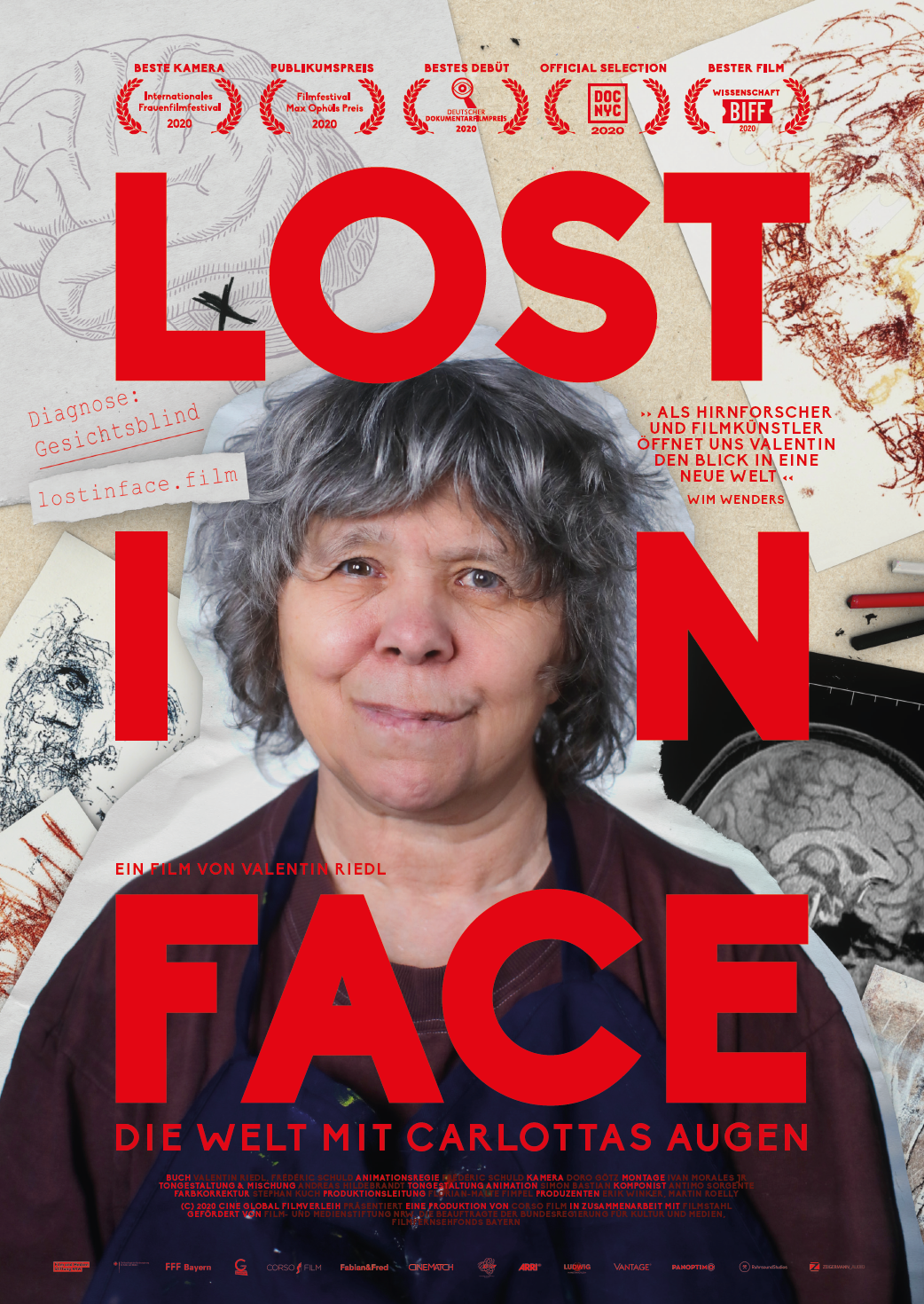 Valentin Riedl erforscht als Arzt und Neurowissenschaftler die Funktionsweise des menschlichen Gehirns. Als Filmemacher porträtiert er in seinem Dokumentarfilm „Lost in face – Die Welt mit Carlottas Augen“ die Künstlerin Carlotta. Carlotta kann keine Gesichter erkennen, nicht einmal ihr eigenes, denn sie leidet unter Prosopagnosie – Gesichtsblindheit. In der Kunst, der Natur und dem Umgang mit Tieren findet sie auf ihrer langen Suche schließlich einen Zugang zum eigenen Gesicht und gleichzeitig den Weg zu ihren Mitmenschen.