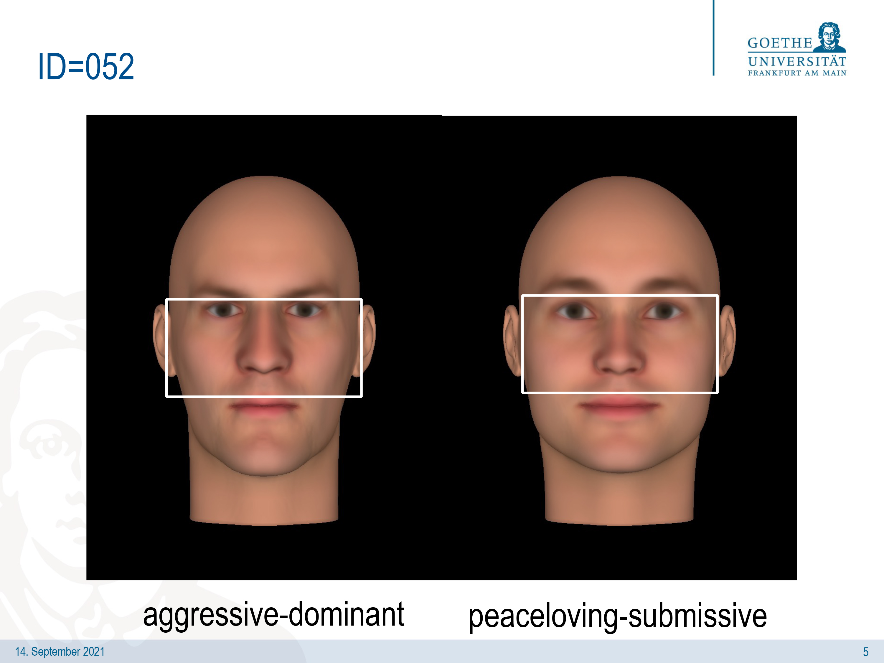 Im psychologischen Labor wurden Proband*innen gebeten, das Bild eines aggressiv-dominanten Mannes im Vergleich zu einem friedfertig-unterwürfigen Mann entweder frei zu zeichnen, aus einer Auswahl von vorgegebenen Gesichtsmerkmalen verschiedener Größe und Form zusammenzusetzen oder durch Veränderung einer neutralen Vorlage am PC zu „fotoshoppen“.