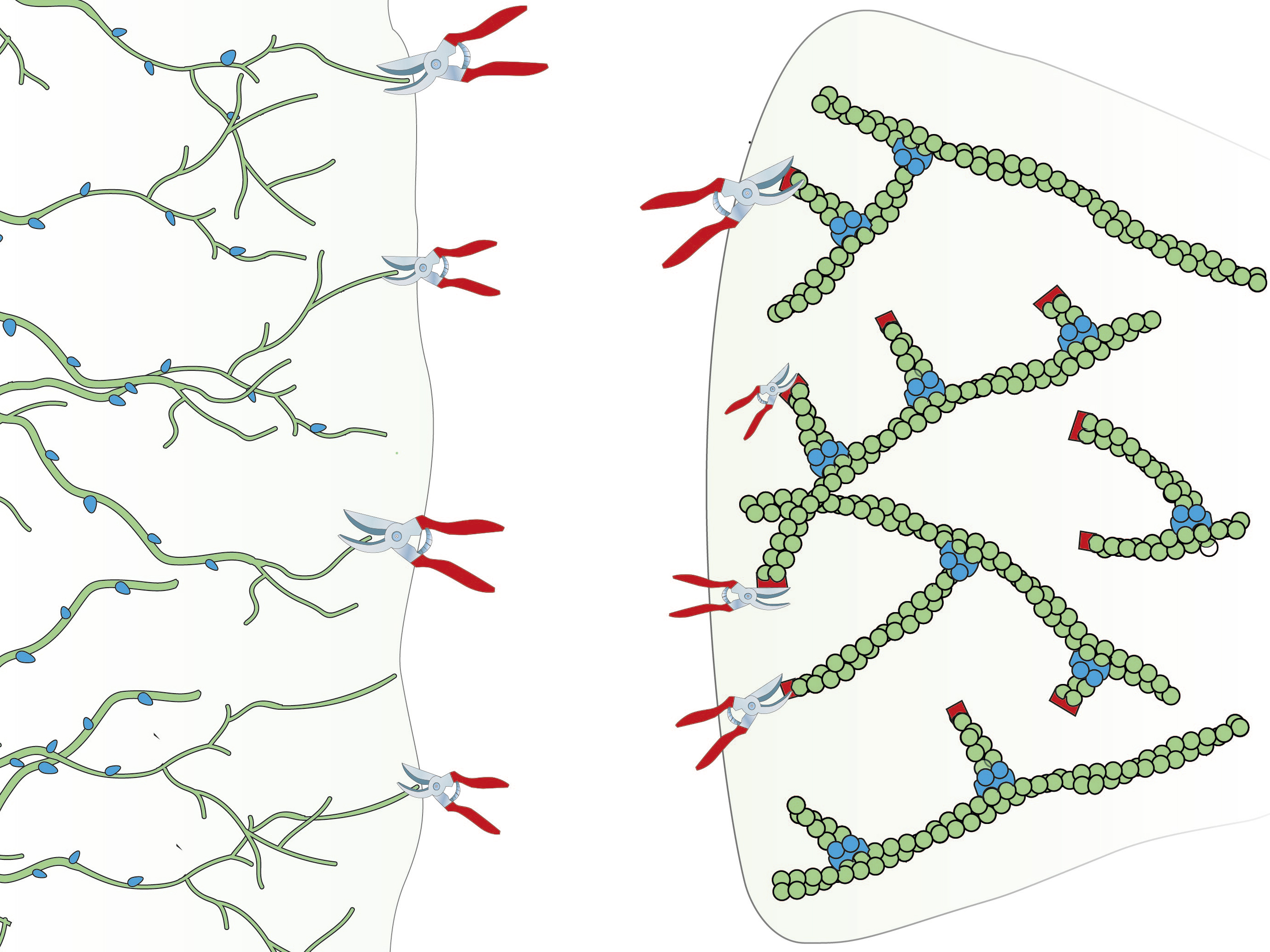 Eine optimale Kraftübertragung auf die Plasmamembran wird durch eine kontinuierliche Pflege des verzweigten Aktin-Netzwerks gewährleistet. Eine wichtige Schlüsselrolle spielt dabei das Capping-Protein, das das Wachstum von Filamenten über eine kritische Länge hinaus verhindert und die Verlängerung von unproduktiven, weit von der Zellmembran entfernten Filamenten stoppt. Das Kappen der Aktinfilamente hat also eine ähnliche Wirkung wie ein pflegender Heckenschnitt: Es hält die (Aktin-)Hecke ordentlich und in Form. Es stimuliert aber auch die Aktinverzweigung (Knospenbildung) in der Nähe der Membran (Pflanzenränder) durch den Arp2/3-Komplex. Wie genau das Capping-Protein die Aktinverzweigung anregt, war bisher nicht bekannt.