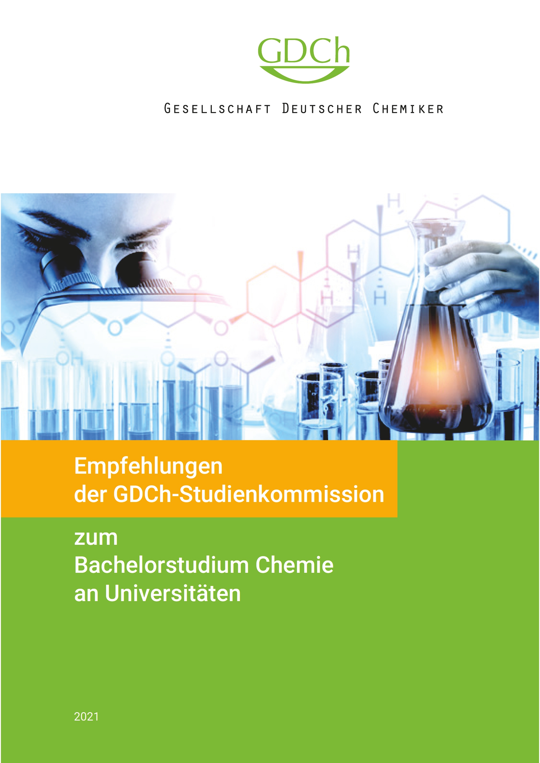 Bereits seit Jahrzehnten entwickeln fachgebietsübergreifende Studienkommissionen der GDCh Empfehlungen für das „Basisstudium Chemie“. Während der Fokus Ende der 90er-Jahre auf der erfolgreichen Umstellung der Diplomstudiengänge auf Bachelor- und Masterstudiengänge lag, geht es heute darum, das Bachelorstudium in regelmäßigen Abständen aktuellen Entwicklungen anzupassen und zukunftsfähig zu erhalten. Zu aktuellen GDCh-Studienkommission gehören auch Angehörige der Konferenz der Fachbereiche Chemie (KFC), der GDCh-Arbeitsgemeinschaft Deutscher Universitätsprofessoren und -professorinnen für Chemie (ADUC), der Bunsen-Gesellschaft für physikalische Chemie (DBG), der Dechema, des Verbandes der Chemischen Industrie (VCI), der AG Theoretische Chemie, des GDCh-JungChemikerForums (JCF) und der Fachgruppen der GDCh.