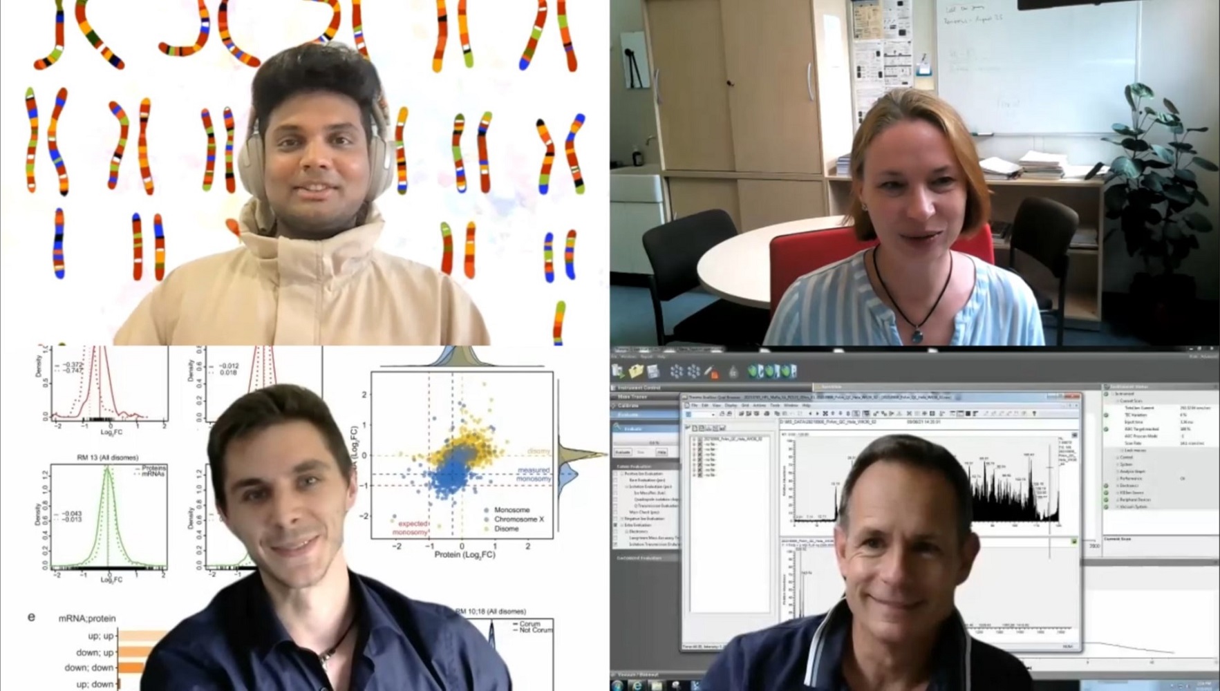 Die Erkenntnisse geben auch Aufschluss über den Zusammenhang von Krebserkrankungen und Monosomie. Wiederkehrende Verluste eines ganzen Chromosoms oder eines Chromosomenarms sind bei bestimmten Tumoren häufig, wie z. B. beim Neuroblastom, bei Lungenkrebs oder myeloischen Malignomen. Chunduri erläutert: „Da monosomische Zellen nur ohne p53 lebensfähig sind, war unsere Theorie, dass der p53-Signalweg bei Krebsarten, die durch Monosomien gekennzeichnet sind, defekt ist. Die Analyse von wissenschaftlichen Datenbanken zu krebsbedingten Veränderungen wie ‚The Cancer Genome Atlas (TCGA)‘ und ‚Cancer Cell Lines Encyclopedia (CCLE)‘ ergab tatsächlich eine starke Assoziation von Monosomie mit p53-Inaktivierung und Beeinträchtigung des ribosomalen Signalwegs“, so der Molekularbiologe. Dass diese Analysearbeit erfolgreich durchgeführt werden konnte, ist nicht zuletzt der Expertise Xiaoxiao Zhang und Prof. Maik Kschischo, beide Biomathematiker, von der Fachhochschule Koblenz zu verdanken.