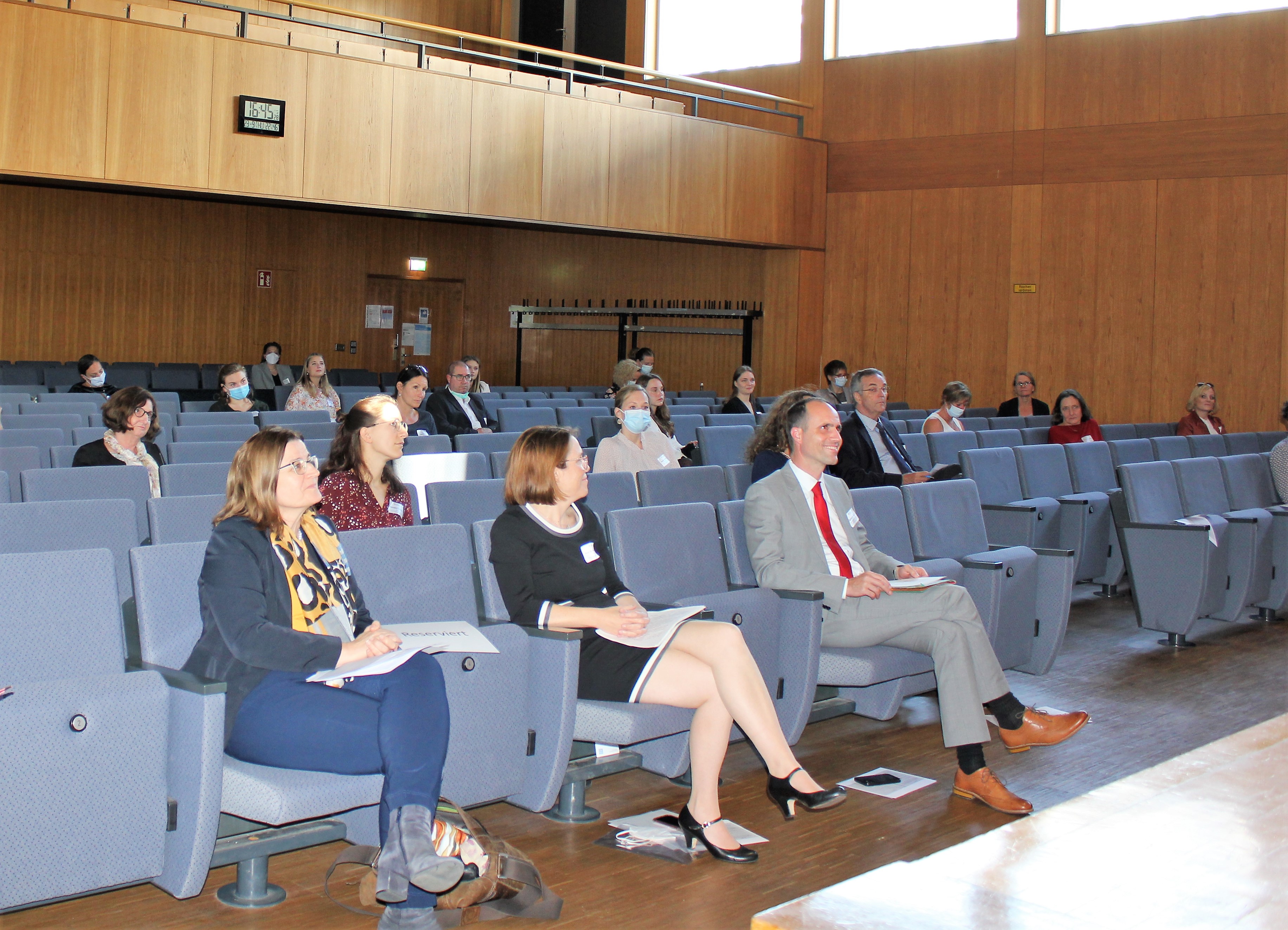 Auch die Vorsitzende des Deutschen Hebammenverbandes e.V., Ulrike Geppert-Orthofer, war in ihrem Festvortrag voll des Lobes für die Entwicklung der jungen akademischen Disziplin Hebammenwesen/Hebammenwissenschaft in Ludwigshafen: „Als damalige Vorsitzende des Landesverbands Baden-Württemberg habe ich die Entwicklungen in Rheinland-Pfalz sehr interessiert beobachtet. Sie waren als Hochschule früh mit dabei und mit beiden Studiengängen halten Sie an der Hochschule ein hervorragendes Angebot bereit“. Sie sind auf dem richtigen Weg!“, so Ulrike Geppert-Orthofer. Die Akademisierung des Berufsstandes sei längst überfällig gewesen und ein wichtiger Schritt: „Sie stärkt die Profession, den interdisziplinären Austausch auf Augenhöhe und ist ein Ausweg aus der Bildungssackgasse des Hebammenberufs.“ Als Vorsitzende des Deutschen Hebammenverbandes erhoffe sie sich außerdem durch die Akademisierung eine größere Nachfrage an Hebammen und Geburtshelfern und damit einen positiven Schub in Zeiten des Fachkräftemangels.