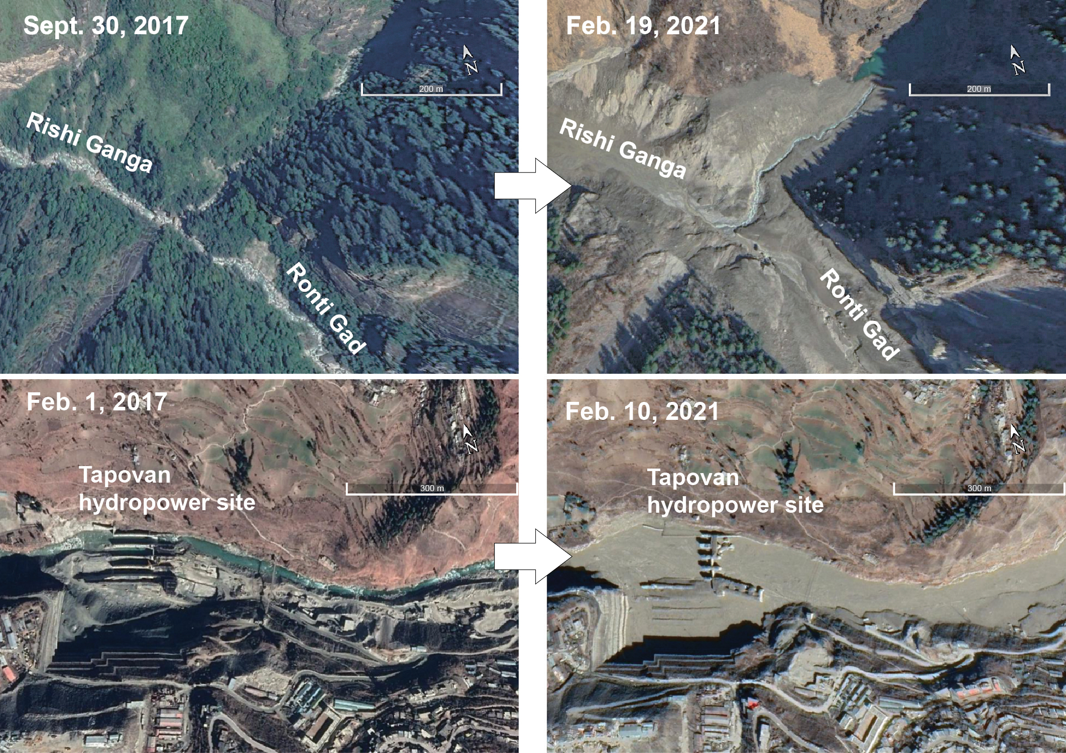 Obwohl der endgültige Auslöser des massiven Bergsturzes, der in einer Höhe von mehr als 5500 Metern begann, nach wie vor ungeklärt ist, ist eines sicher: Am Sonntag, 7. Februar 2021, um kurz vor halb elf Uhr vormittags, begannen mehr als 20 Millionen Kubikmeter Eis und Gestein ins Tal des Ronti Gad zu stürzen. Seismometer registrierten das Signal um 10:21 Uhr und 14 Sekunden Ortszeit. 54 Sekunden später traf die Masse in 3730 Metern Höhe auf den Talboden und verursachte einen Aufprall, der einem Erdbeben der Stärke 3,8 entsprach. Im Tal mobilisierte die Mischung aus Gestein und Eis Schutt und zusätzliches Eis, das sich - vermischt mit Wasser - als gigantischer Murgang durch die Täler der Flüsse Ronti Gad und Rishi Ganga wälzte. Erstautorin Kristen Cook vom GFZ schätzt, dass die Masse zunächst mit fast 100 Kilometern pro Stunde bergab schoss; nach etwa zehn Minuten verlangsamte sich die Bewegung auf knapp 40 Kilometer pro Stunde.