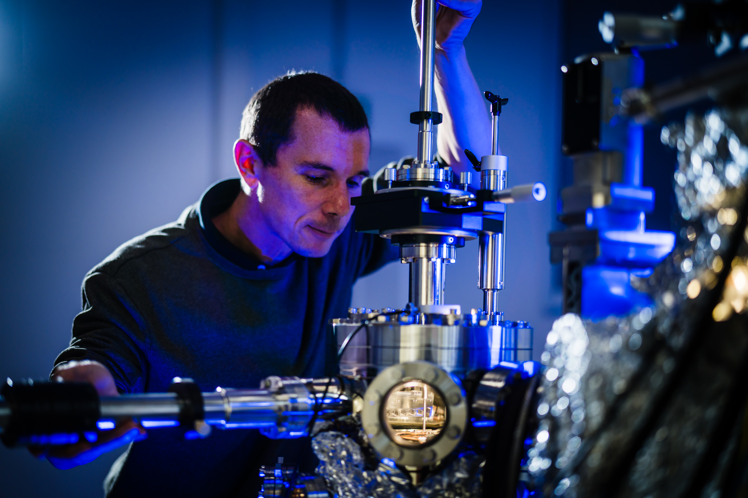 Die grundlegenden physikalischen Aspekte des Projekts bearbeitet im Tieftemperatur-Rastertunnelmikroskop Prof. Jörg Kröger, Leiter des Fachgebiets Experimentalphysik 1 und ebenfalls Mitinitiator des Projekts. Mithilfe der Kryoanalyse können Atome und Moleküle mit einer atomaren Sonde gezielt positioniert werden. Diese künstlichen Strukturen, auch Nanolaboratorien genannt, ermöglichen es, die physikalischen Mechanismen künftiger Memristoren aufzudecken und zu verstehen. Mit dem Mikroskop kann Prof. Kröger nun Experimente durchführen, wie es nur wenige Forschergruppen weltweit können: „Das komplementiert die bestehenden Möglichkeiten der TU Ilmenau in einer Art und Weise, wie ich es kaum zu träumen gewagt habe. Wir können damit beobachten, welche Eigenschaften diese kleinsten Strukturen besitzen, wie sie zum Beispiel den Suprastrom durch einatomige Stromkreise führen oder wie sie kollektiv Licht emittieren. Das ist reale Quantenmechanik!“