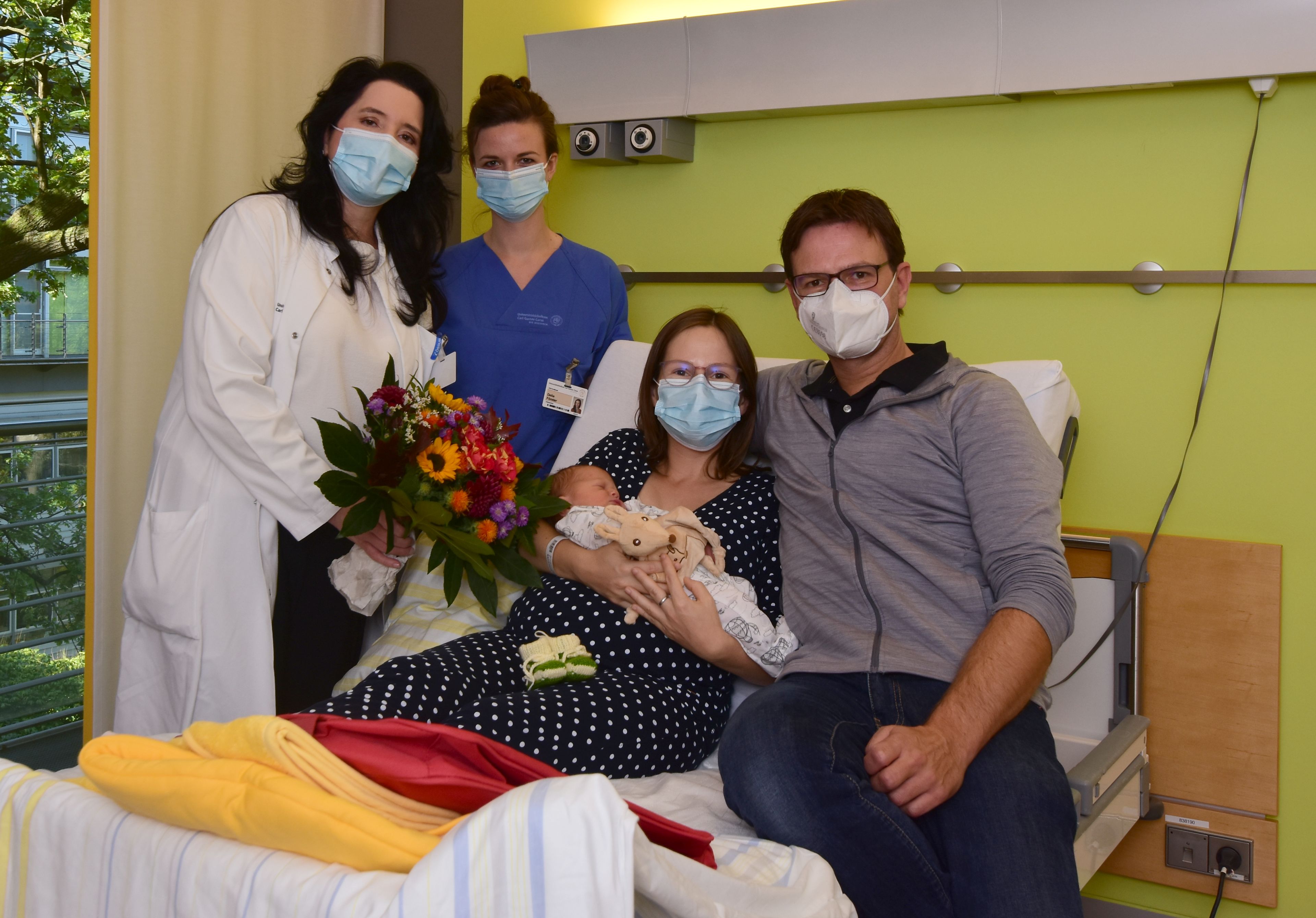 Für Schwangere und junge Eltern bedeutet die Corona-Pandemie eine anhaltende Anspannung und Herausforderungen. Die Unsicherheit ob der Infektionsgefahr ist groß. Das wissen auch die Medizinerinnen und Mediziner, die Hebammen und Pflegenden in den Kliniken für Frauenheilkunde und Geburtshilfe sowie für Kinder- und Jugendmedizin am Uniklinikum Dresden. „Es ist uns besonders wichtig, gerade in dieser Zeit, den werdenden Müttern helfend zur Seite zu stehen und Ängste zu nehmen“, sagt Prof. Pauline Wimberger, Direktorin der Klinik für Frauenheilkunde und Geburtshilfe. Deshalb ist es dem Team wichtig, dass es trotz COVID-19-Pandemie den Vätern durchgehend möglich war, die Geburten ihrer Kinder im Kreißsaal mitzuerleben. Das Team freut sich, dass weiterhin Familienzimmer und auch Besuchszeiten angeboten werden können. „Die Gesundheit unserer Patientinnen und der Mitarbeitenden geht immer vor“, sagt Prof. Wimberger. „Wir haben für die notwendigen Regeln großes Verständnis und Zuspruch erfahren und freuen uns über das große Vertrauen der werdenden Eltern.“
