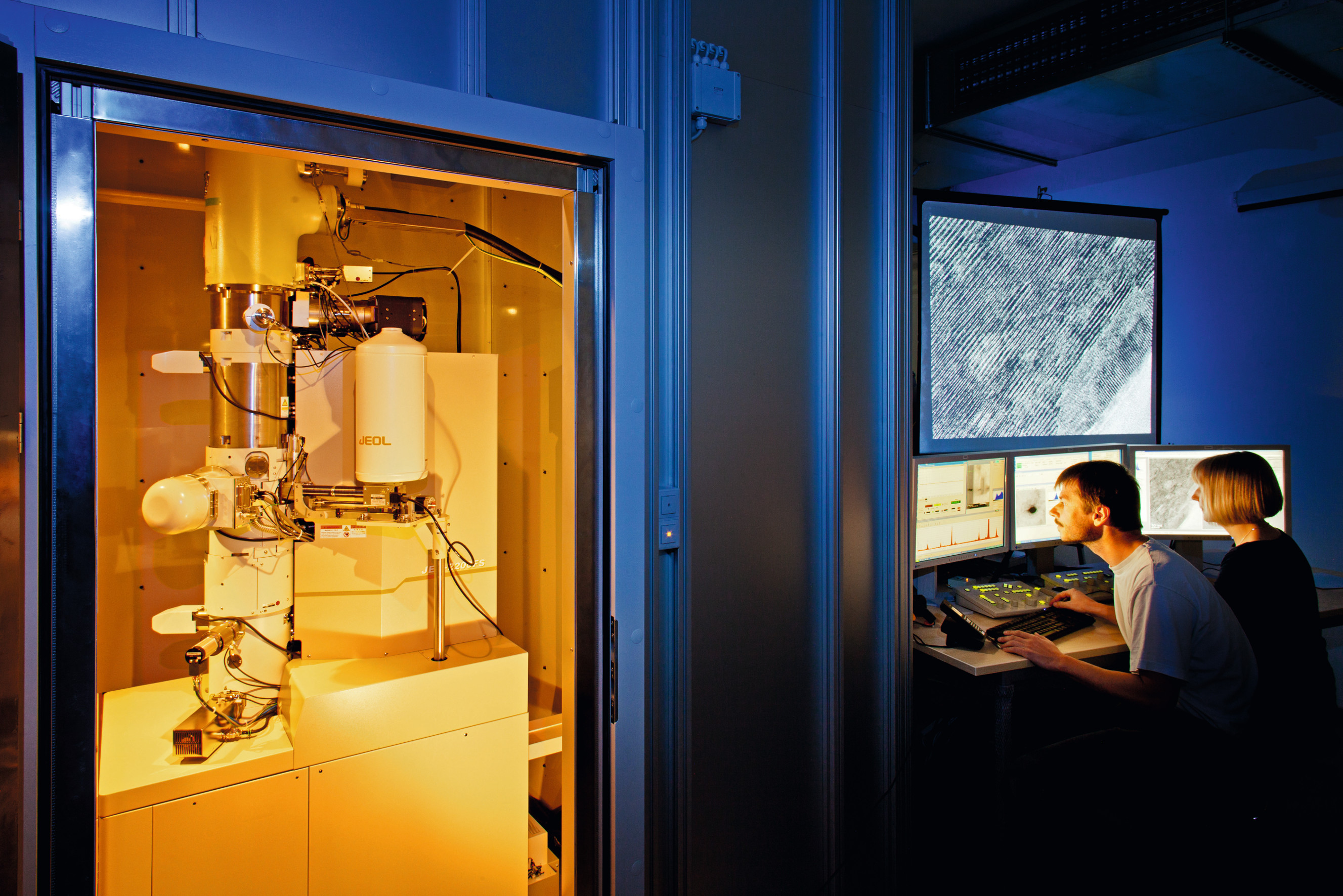 Um die Grenzflächen gezielt zu analysieren, bereitet Dr. Christiane Ullrich die Proben in einem aufwendigen Verfahren vor. „Von der Oberfläche der Hartstoffprobe wird mit einem fokussierten Ionenstrahl eine Lamelle mit der Dicke von weniger als hundert Nanometern herausgeschnitten und dann mithilfe eines Ionenpolierprozesses hauchdünn in die finale Form präpariert“, veranschaulicht die wissenschaftliche Mitarbeiterin. Mit einem hochauflösenden analytischen Transmissionselektronenmikroskop untersucht und vergleicht das Team die Proben. Dabei wird die Abbildung bei atomarer Auflösung mit lokalen spektroskopischen Methoden kombiniert.