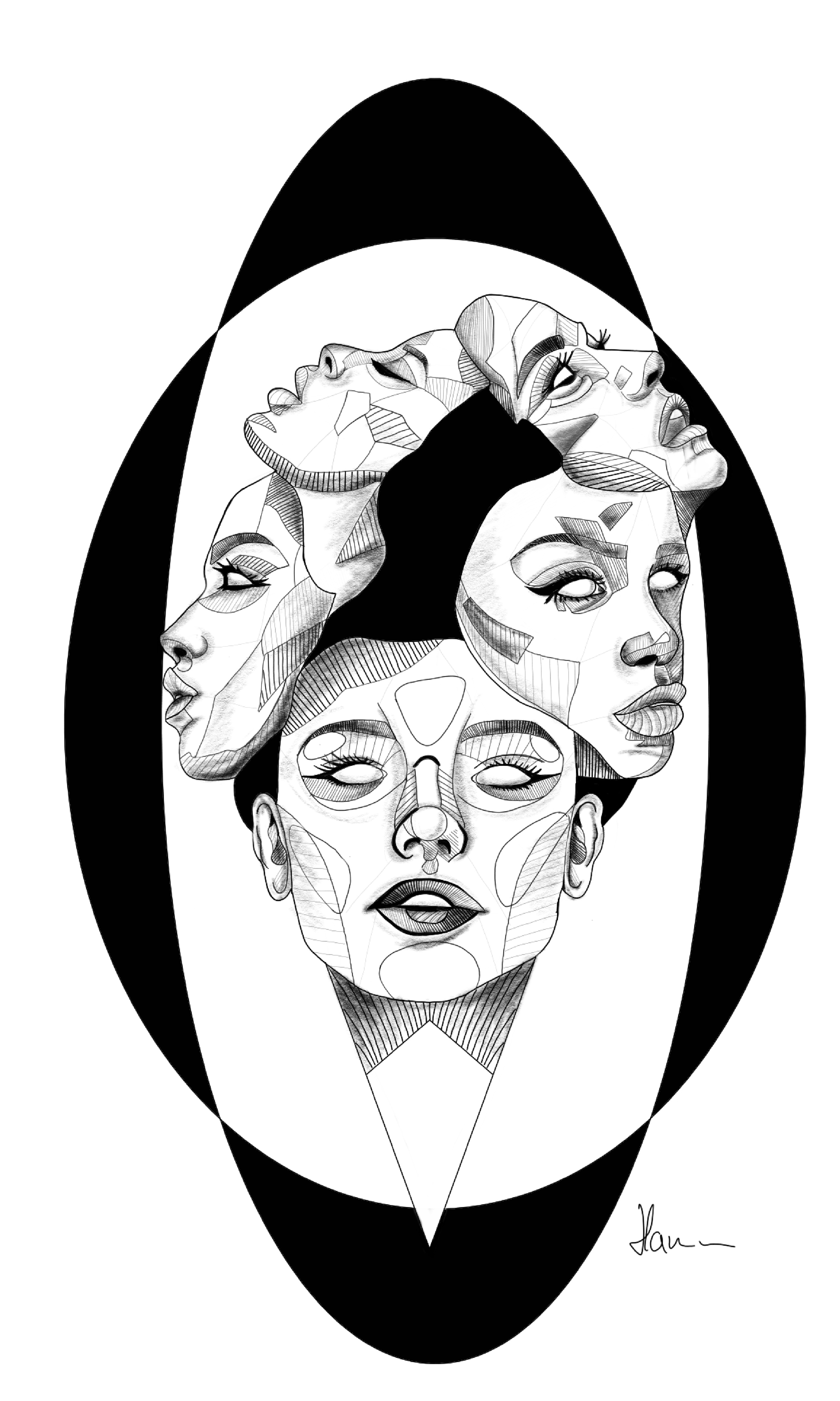 Der Monat Oktober steht im Zeichen des Umweltbewusstseins, auf das die Künstlerin Susanna Hamm mit ihrem Bild aufmerksam machen will. Die Schwarz-Weiß-Zeichnung zeigt fünf Gesichter mit unterschiedlichen Gemütszuständen aus verschiedenen Perspektiven. „Der Fokus liegt auf dem Verständnis über sich selbst und deren Konsequenzen“, schreibt Künstlerin Susanna Hamm über ihr Werk. „Das Gesicht in der Mitte ist ein Symbol für uns alle. All die Gesichter um das Gesicht herum sind Emotionen und Gefühle, welche man zuerst verstehen und erklären muss, bevor man ihr Ausmaß erkennt. Die Gesichter spiegeln Emotionen wider. Jede dieser Emotionen hat eine andere Auswirkung auf die Umwelt der Person und wie man sich gegenüber dieser verhält. Alle zusammen bilden sich ein Cluster, welches die Grundlage zum Leben bildet.“