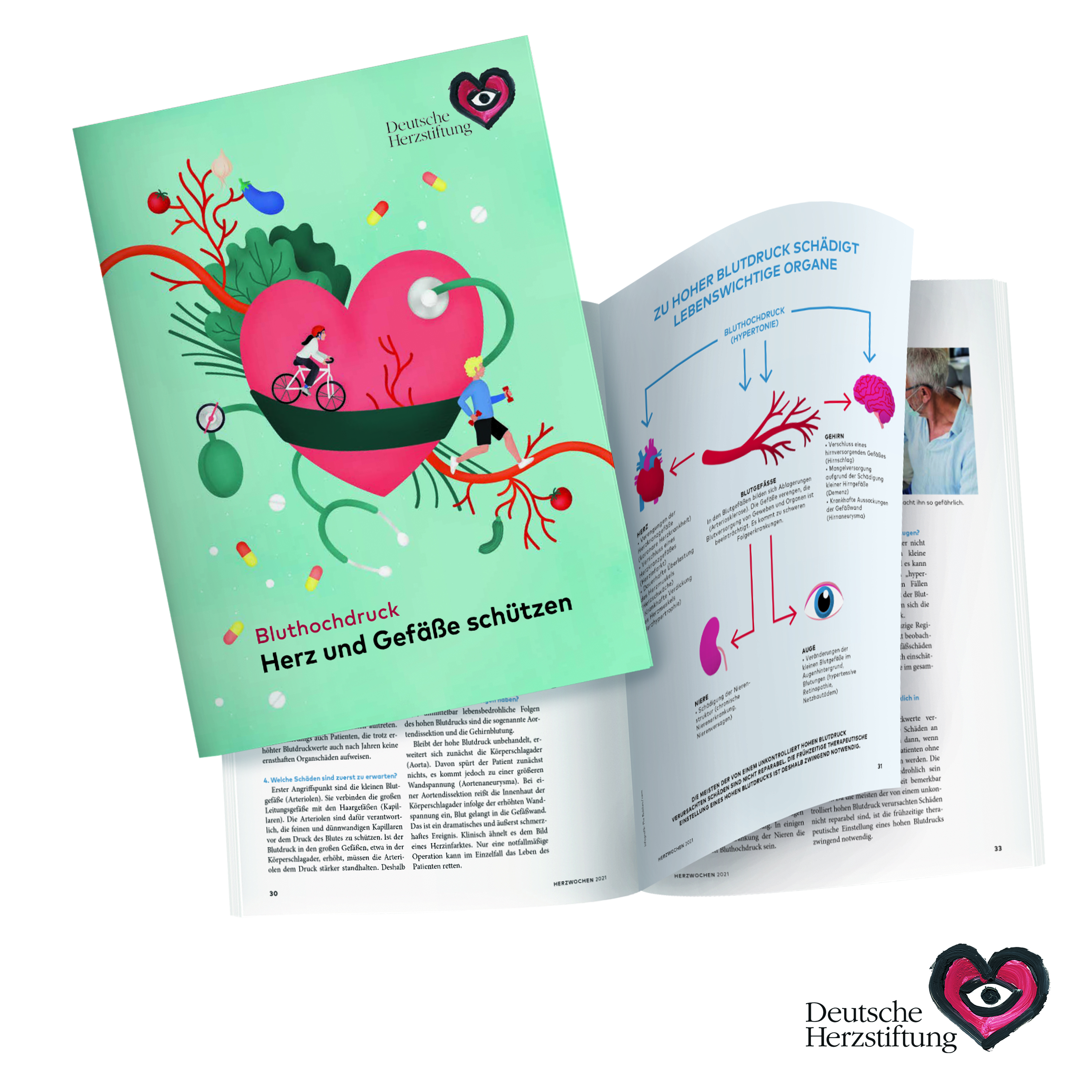 Zu den vielfältigen Herzwochen-Angeboten zählt die Broschüre „Bluthochdruck: Herz und Gefäße schützen“, in der renommierte Bluthochdruckexperten laienverständlich über Ursachen, Diagnose und Therapie des Bluthochdrucks informieren. Ein weiterer Schwerpunkt ist die Prävention. Die 130 Seiten umfassende Broschüre kann bei der Herzstiftung kostenfrei unter www.herzstiftung.de/bestellung oder per Mail unter bestellung@herzstiftung.de oder Tel. 069 955128-400 angefordert werden