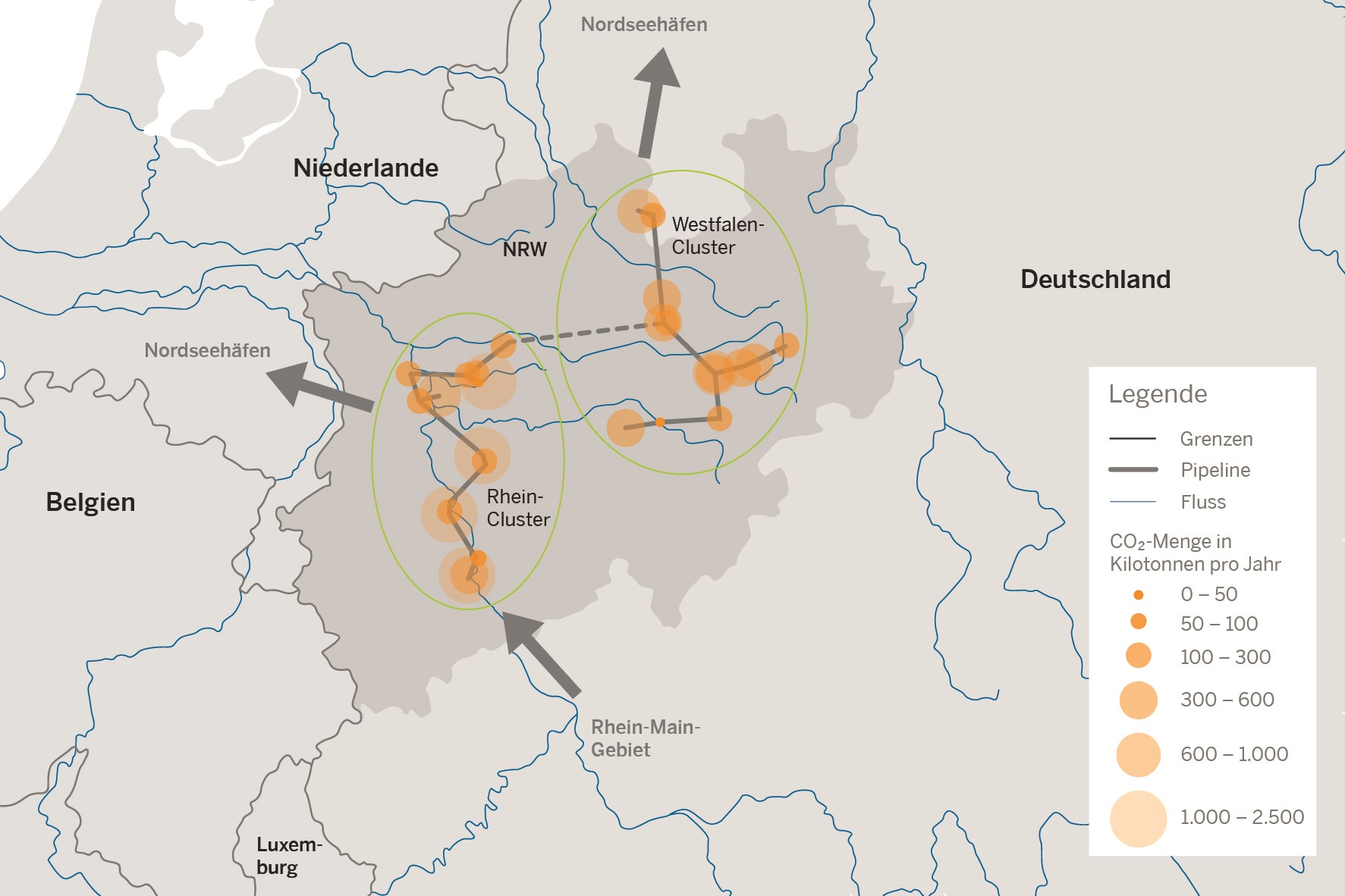 Für beide Möglichkeiten betonen die AutorInnen des neuen Diskussionspapiers die Dringlichkeit, eine entsprechende Infrastruktur für den Transport aufzubauen. Konkrete Optionen, wie ein solches Pipeline- und Transportsystem aussehen könnte, fasst das Papier in einer Infrastrukturkarte für NRW zusammen.