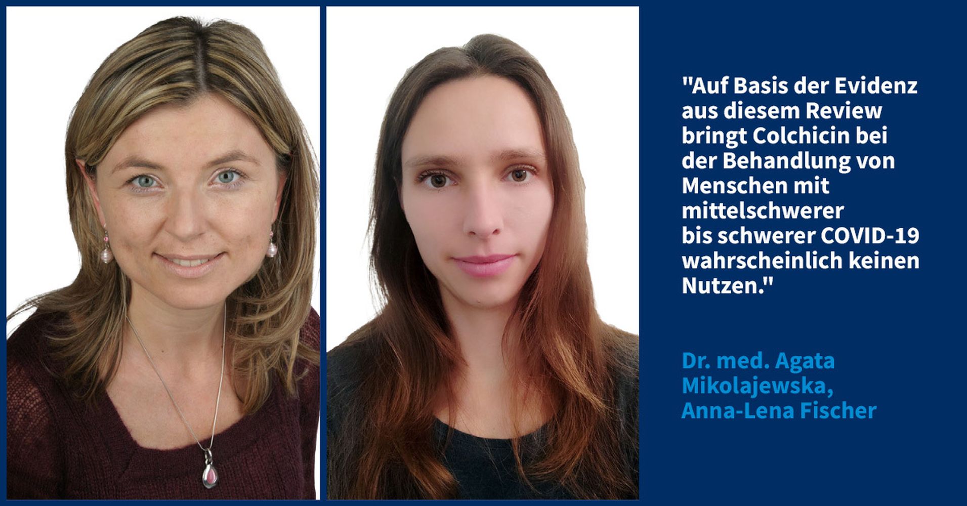 In der systematischen Literatursuche für ihre Übersichtsarbeit fanden die Autor*innen Evidenz aus drei randomisierten kontrollierten Studien (RCTs). Demnach hat Colchicin bei Menschen mit mittelschwerer bis schwerer Erkrankung wahrscheinlich keinen Nutzen. Allerdings könnte Evidenz aus derzeit noch laufenden bzw. unveröffentlichten Studien dieses Ergebnis noch verändern. Über die Sicherheit des Medikaments in der Behandlung von Patient*innen mit COVID-19 erlaubt die bisher verfügbare Evidenz keine definitiven Aussagen.