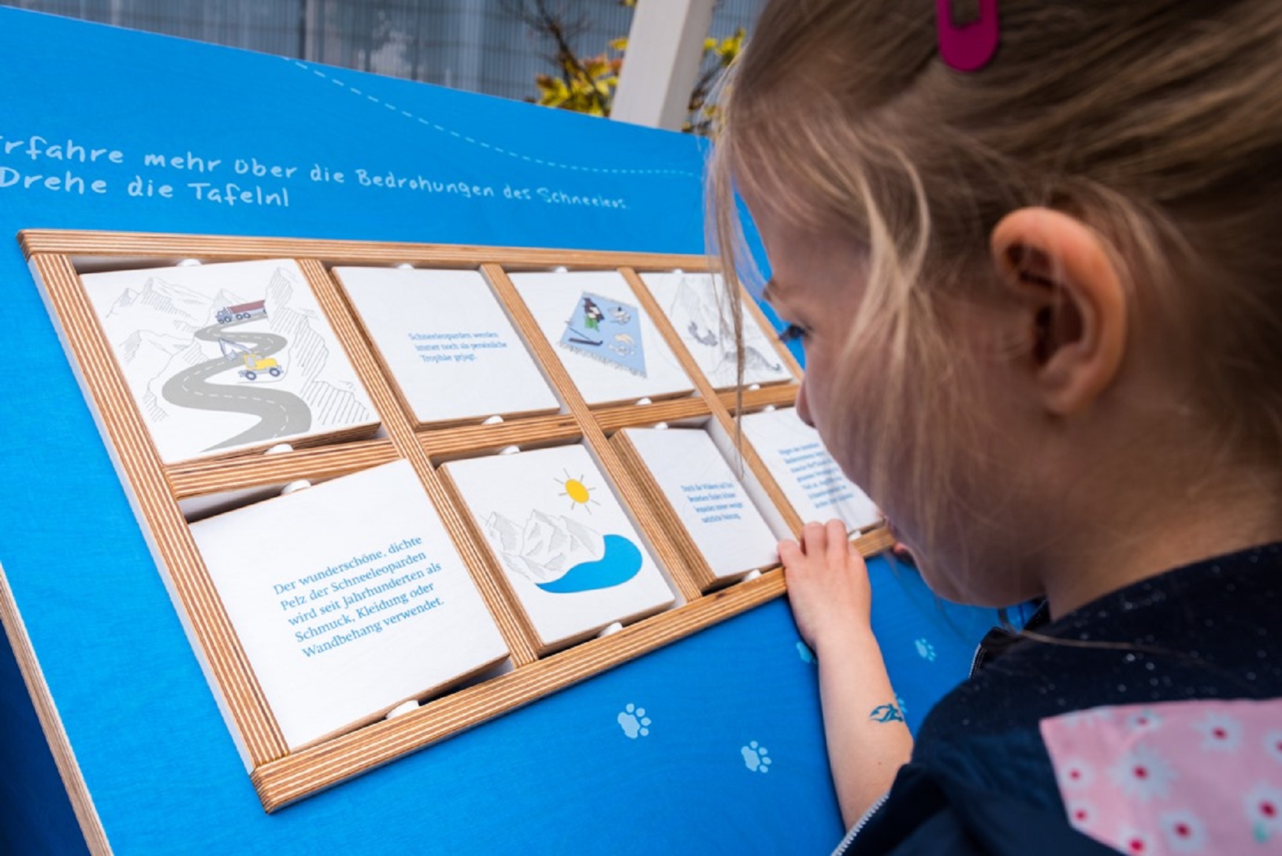 Insbesondere die jüngeren Besuchenden des Museums Koenig können Pfotenabdrücke im Sand erstellen, Beutetiere auf einem Monitor fangen sowie eine echte, beschlagnahmte Eisenschlagfalle erkunden. Solche Fallen nutzen Wilderer, um Schneeleoparden illegal zu fangen und zu erlegen. Digitale und analoge Mitmach-Aktionen machen die Ausstellung zu einem Erlebnis für Groß und Klein. Am Ende der Stationen kann man der Großkatze sogar ins Auge sehen - per Augmented Reality.