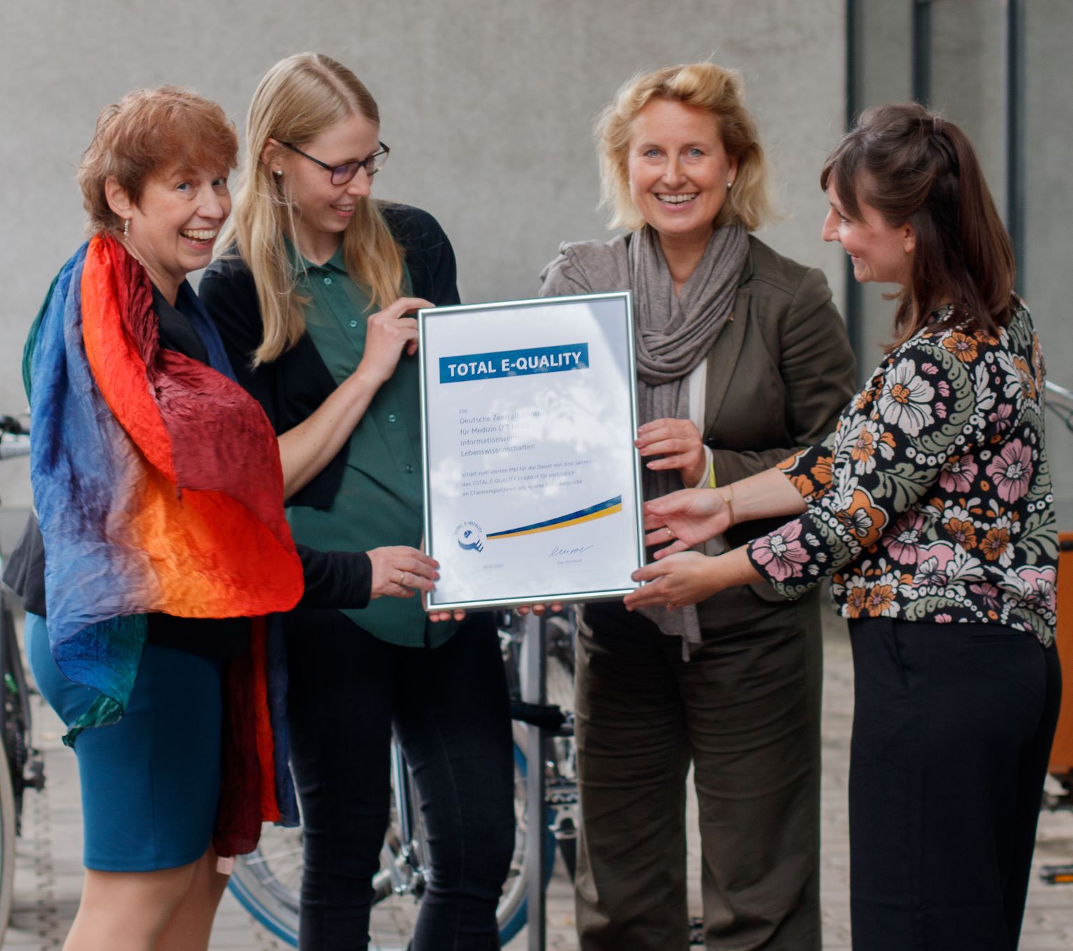 ZB MED – Informationszentrum Lebenswissenschaften erhielt bei der virtuellen Preisvergabe am 26.10.2021 das Zertifikat Total E-QUALITY bereits zum vierten Mal in Folge. Die erstmalige Auszeichnung mit dem Prädikat für Chancengleichheit in Wirtschaft und Wissenschaft erfolgte im Jahr 2010. Das Zertifikat gilt in der Regel für jeweils drei Jahre und ist das Ergebnis eines umfangreichen Bewerbungsprozesses. Die Entscheidung erfolgt dann durch eine unabhängige Jury. Auf dem Prüfstand stehen die Vereinbarkeit von Beruf und Familie sowie die Berücksichtigung von Chancengleichheit in den Unternehmensgrundsätzen.