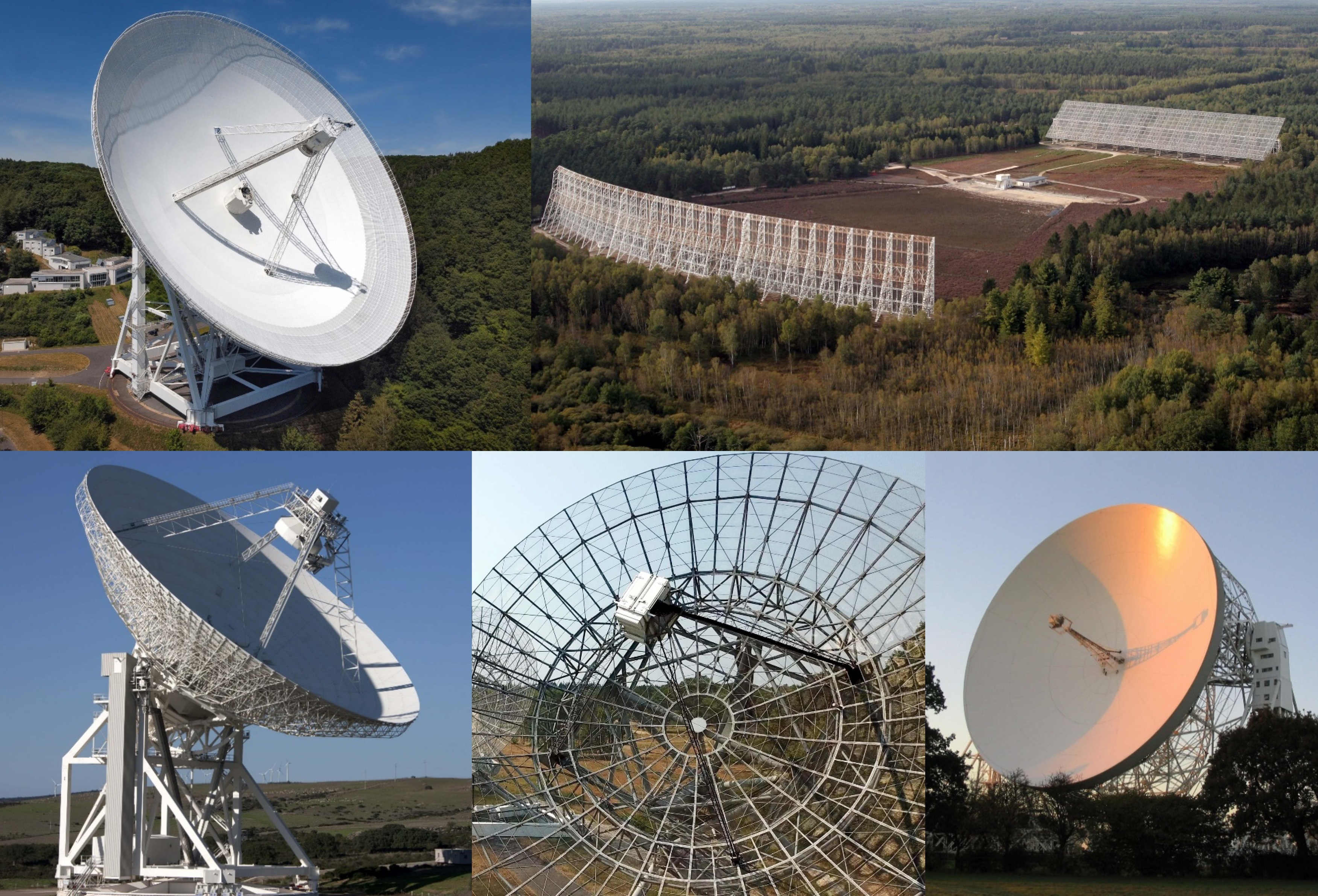 Dieses Ergebnis wurde möglich aufgrund eines Datensatzes, der über einen langen Zeitraum von 24 Jahren mit den fünf großen europäischen Radioteleskopen gesammelt wurde (vgl. Abb. 2). Dazu gehören das 100-m-Radioteleskop des Bonner Max-Planck-Instituts für Radioastronomie bei Effelsberg, das 76-m-Lovell-Teleskop in Cheshire/Großbritannien, das Nançay-Teleskop für Dezimeterradiowellen in Frankreich, das 64-m-Radioteleskop bei Pranu Sanguni (Sardinien/Italien) sowie die 16 Antennen des Westerbork-Synthesis-Radioteleskops in den Niederlanden. Im Beobachtungsmodus des „Large European Array for Pulsars“ (LEAP) sind diese fünf Teleskope so miteinander verbunden, dass sie ein virtuelles voll bewegliches 200-m-Radioteleskop darstellen, mit dem die Empfindlichkeit des EPTA für Gravitationswellen erheblich verbessert wird.