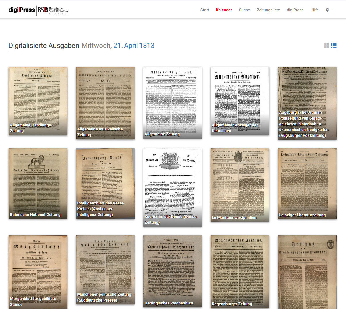 Die Bayerische Staatsbibliothek erweitert erneut ihr digitales Angebot: Mit der Bereitstellung von weiteren mehr als 361.000 Zeitungsseiten sind nun insgesamt rund 8,2 Millionen Zeitungsseiten in digiPress aufrufbar. Im Portal digiPress werden alle digitalisierten historischen Zeitungen unterschiedlichster Regionen und Sprachen vom 17. bis ins 20. Jahrhundert aus dem Bestand der Bayerischen Staatsbibliothek mit einer Fülle an Funktionalitäten zentral präsentiert.