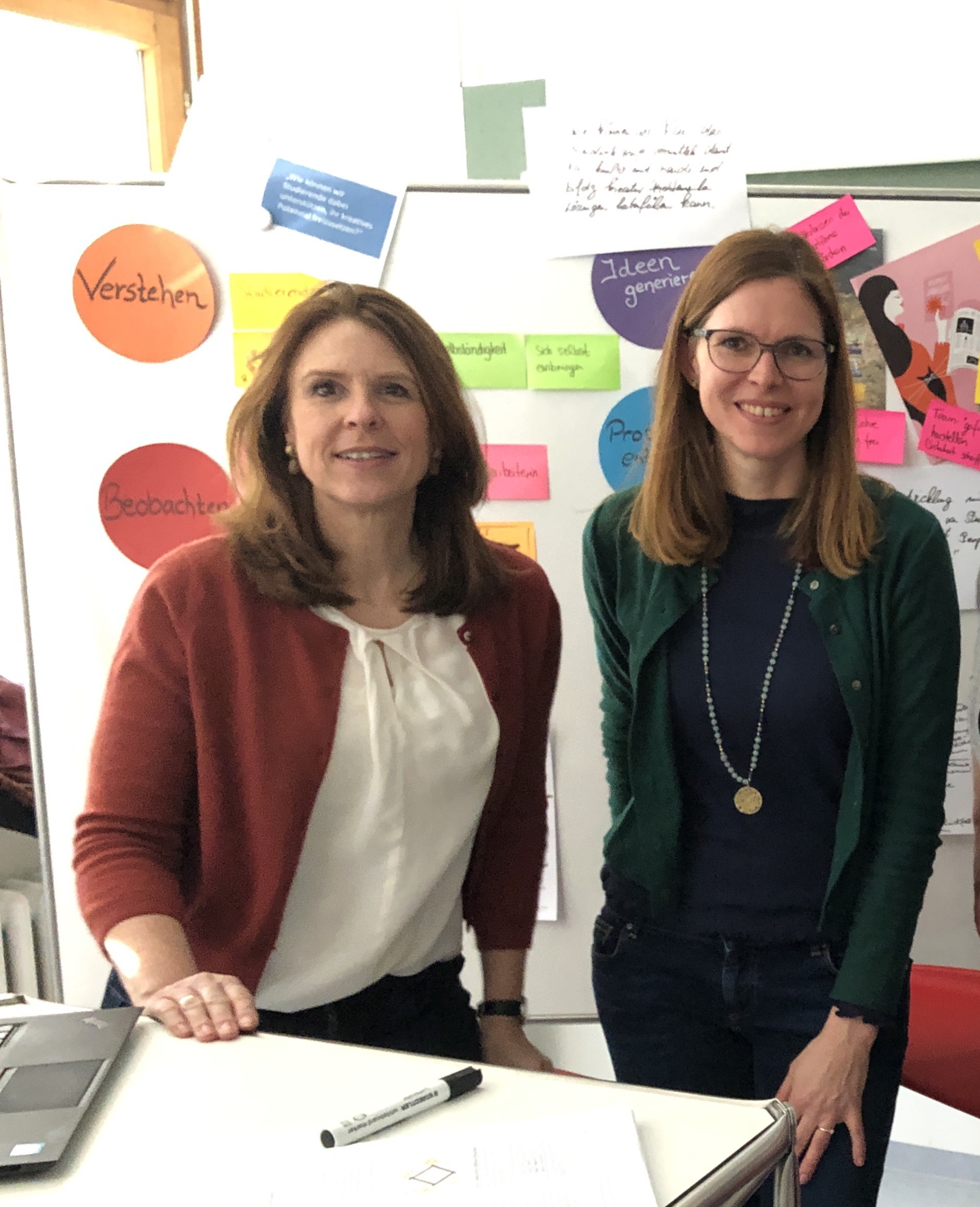 Das Workbook entstand parallel zu einem Changemaker-Seminar, das die beiden Professorinnen an der Hochschule Biberach anbieten, um – wie sie es formulieren –„Agenten des Wandels auszubilden“. Denn Akteure, die die Herausforderungen der Welt im Wandel angehen und lösen wollen, benötigen Zukunftskompetenzen, so Mattheis. Unter diesen Future Skills verstehen sie und ihre Kollegin unternehmerisches Denken, Problemlösungsfähigkeit und Ambiguitätstoleranz, also die Fähigkeit mit Unsicherheiten umgehen zu können. „Das Seminar beruht auf theoretischen Grundlagen, die sich aus innovativen Methoden speisen, die zum Beispiel am renommierten Massachusetts Institute of Technology (MIT) im amerikanischen Cambridge entwickelt wurden“, erläutert Isabell Osann, die Management und Organisation lehrt und das Design Thinking Labor an der Hochschule Biberach aufgebaut hat. Henrike Mattheis ist Professorin für Grundlagen des Rechts sowie Didaktikbeauftragte der HBC. Beide vermitteln sie Methoden des Design Thinkings ebenso wie der Theory U von Otto Scharmer oder dem Systemdenken nach Peter Senge, etwa im genannten Changemaker-Seminar, das sie als interdisziplinäres Angebot für Studierende aus allen Studiengängen und allen Studienphasen angelegt haben.