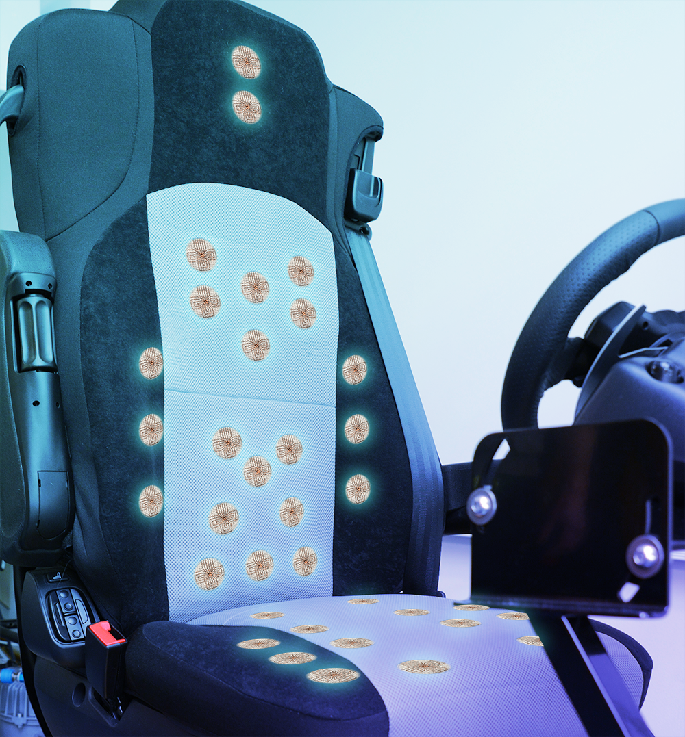 Das Fraunhofer IIS und die Daimler AG arbeiten gemeinsam an der Validierung eines »Mobilization Seats« mit integrierter kapazitiver Sensortechnologie. Ziel des Projektes ist die Verbesserung der Lebens- und Arbeitsbedingungen von Berufskraftfahrerinnen und -kraftfahrern, bei denen langes Sitzen und einseitige Bewegungen zum Alltag gehören. Die Effekte des »Mobilization Seats« wurden nun in einer Fahrsimulatorstudie unter Beweis gestellt.