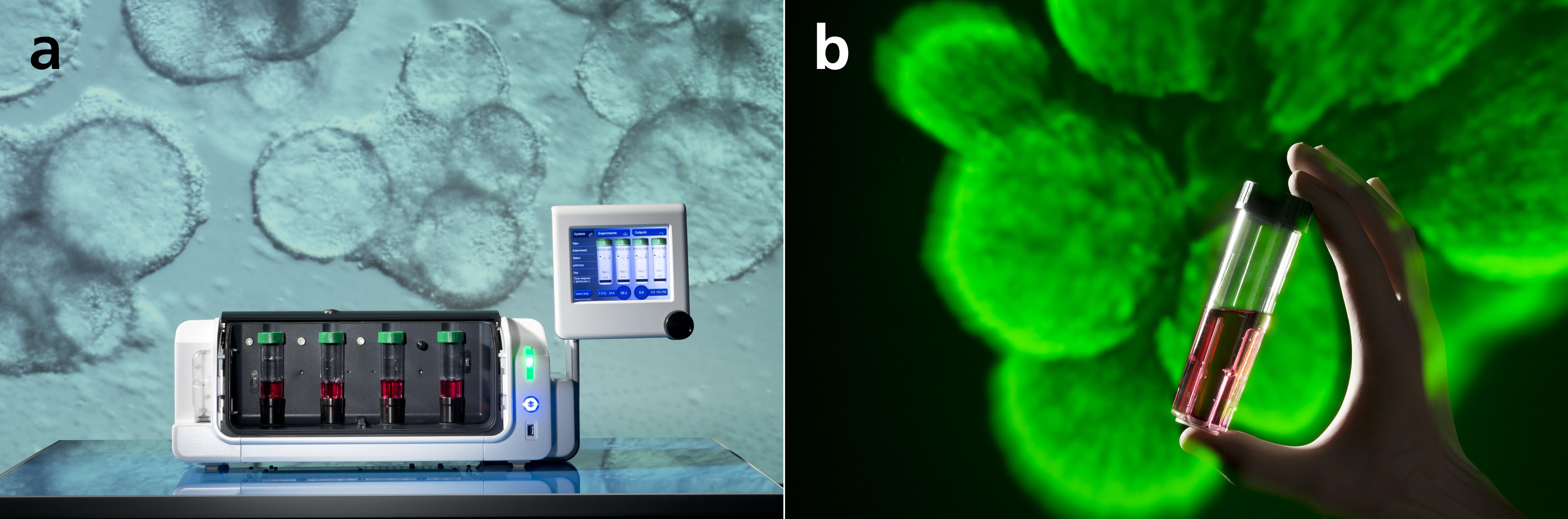 The key to iPS cell culture at SPT is the use of bioreactors, in which the cells grow while floating freely in a nutrient solution or adherent on microcarrier. Julia Neubauer and Marco Metzger of the Fraunhofer ISC, the SPT's Deputy Managing Director, explain that in these reactors, the cells are cultured on tiny hydrogel microspheres, for example. They can also grow in small 3D aggregates and interact with each other. These methods successfully mimic natural tissue growth. Another advantage of free-floating iPS cell culture is that the cells receive optimal nutrition and oxygen. In a group of cells on a 2D surface, those on the bottom layer are often less well nourished. The cell environment also doesn’t provide natural conditions.