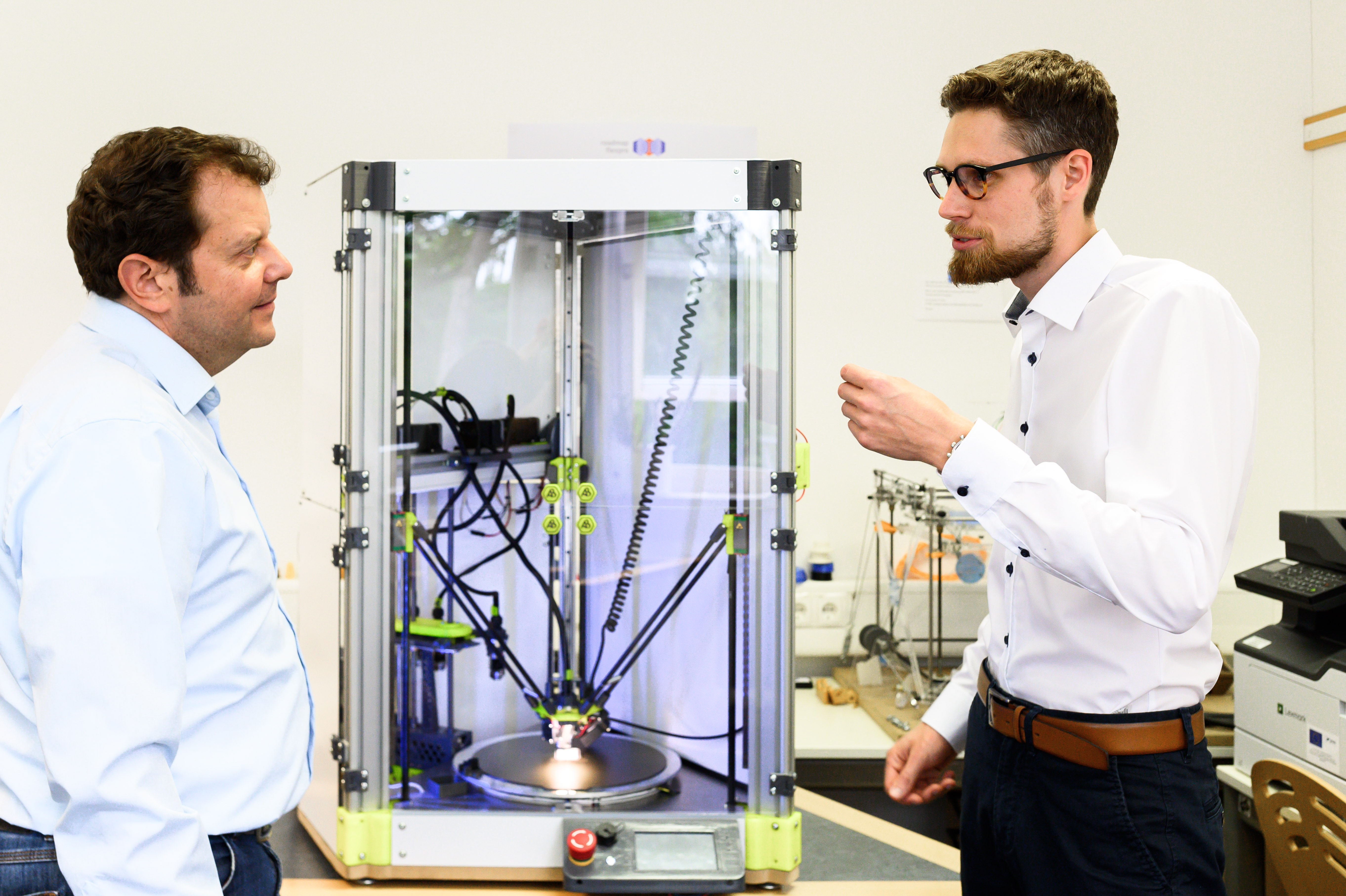 Die Präsidentin freut sich, dass außerdem eine Förderung für ein weiteres wichtiges Zukunftsthema der Hochschule bewilligt wurde: Für „Wissenstransfer zur Fertigung von Prototypen aus nachhaltigen Materialien – Prozesskette in der additiven Fertigung“ unter Leitung von Prof. Dr. Markus Stark erhält die Hochschule über das Wissenschaftsministerium bis zu 580.160 Euro aus den REACT-EU-Fördermitteln des Europäischen Sozialfonds. Die additive Fertigung – bekannt auch als 3D-Druck – ermöglicht, sehr schnell Bauteile zu fertigen und Prototypen zu erstellen. Da besondere Strukturen und komplexe Geometrien „gedruckt“ werden können, wird häufig weniger Material benötigt. Der sparsame Einsatz der Ressourcen trägt zur Nachhaltigkeit bei, und die Produkte werden gleichzeitig leichter und in der Anwendung energieeffizienter. Auch bei diesem Projekt geht es darum, praxisorientierte Qualifizierungsangebote vor allem für Beschäftigte der kleinen und mittelständischen Unternehmen aus der Region Oberfranken anzubieten. Der Schwerpunkt liegt dabei auf dem Innovationsdreieck Coburg – Kronach – Lichtenfels, das in der Strategie der Hochschule für die kommenden Jahre große Bedeutung hat.
