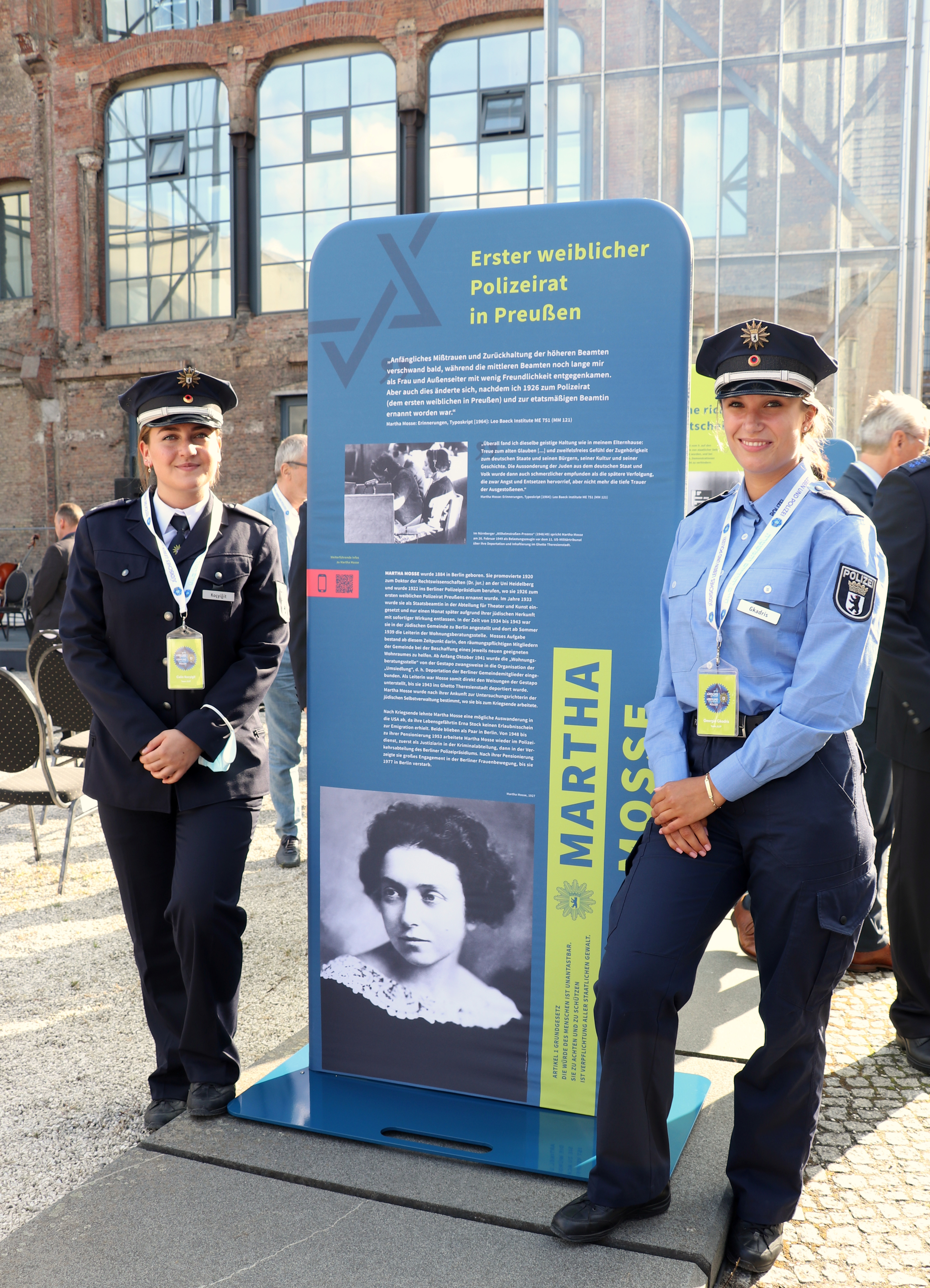 Gemeinsam mit ihrer Kommilitonin Georgia Gkadris erforschte Celin Koçyiğit im Rahmen einer Lehrveranstaltung das Leben von Martha Mosse, zeichnete es für die Exposition auf: Die promovierte Juristin wurde 1926 erste Polizeirätin Preußens und 1933 aufgrund ihrer jüdischen Herkunft als Staatsbeamtin entlassen, 1943 ins Ghetto Theresienstadt deportiert. Sie überlebte, kehrte zurück nach Berlin und trat als Zeugin bei den Nürnberger Prozessen auf. Ab 1948 bis zu ihrer Pensionierung arbeitete Mosse wieder im Polizeidienst und war in der Berliner Frauenbewegung aktiv. „Es ist unglaublich, welche Stärke diese Frau hat“, so Koçyiğit.