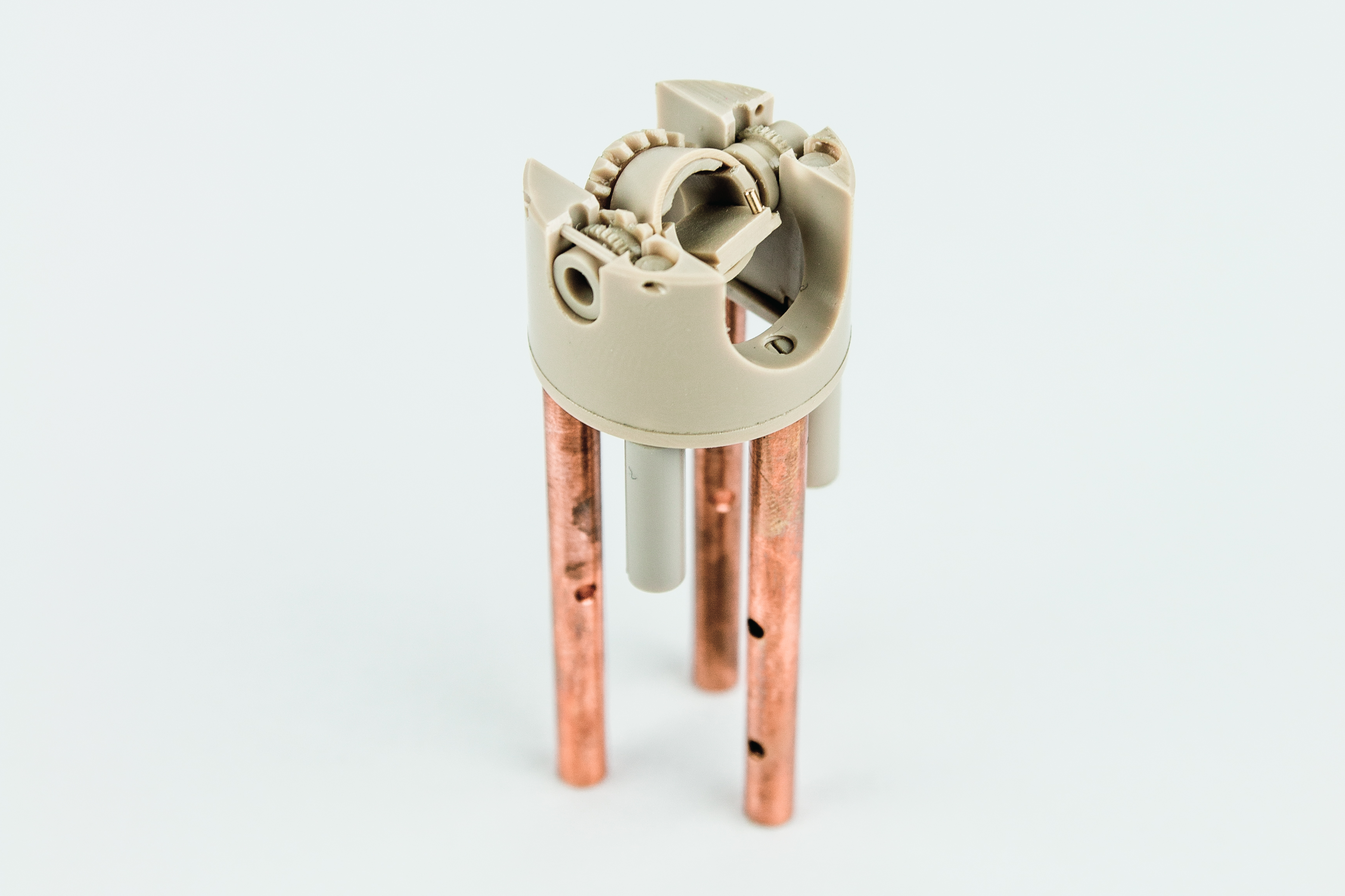 Die Besonderheit der neuen Erfindung besteht in der gleichzeitigen Ansteuerbarkeit zweier Rotationsachsen, die im rechten Winkel zueinander stehen und sich unabhängig voneinander bewegen lassen. Dadurch ist eine präzise Ausrichtung der untersuchten Proben beispielsweise bezüglich eines äußeren elektromagnetischen Feldes möglich – und das auf kleinstem Raum. „Die verwendeten Materialien sind unmagnetisch. Dadurch vermeiden wir die Entstehung störender magnetischer Streufelder während unserer Messungen. Alle relevanten Bauteile sind aus dem Kunststoff Polyetheretherketon gefertigt, der kaum verschleißt und tiefste Temperaturen unbeschadet übersteht“, benennt Stefan Findeisen die hervorstechenden Eigenschaften des gewählten Werkstoffs. Der Rotax kann aber auch problemlos aus metallischem Material wie etwa Messing gefertigt werden, wenn eine gute thermische Ankopplung der Probe bei tiefen Temperaturen eine entscheidende Rolle spielt.