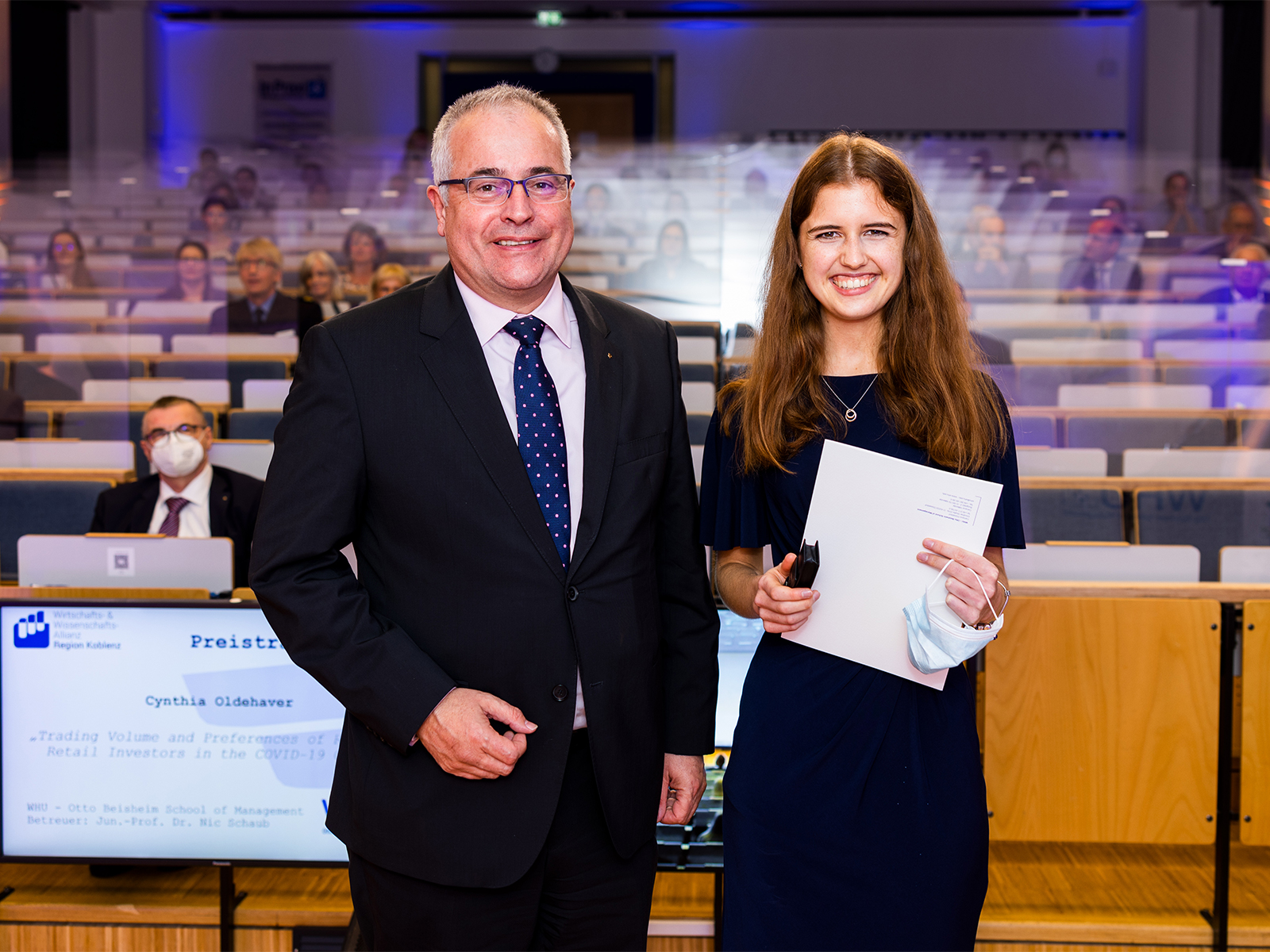 Am 28. Oktober wurde der Koblenzer Hochschulpreis erstmals in den Räumlichkeiten der WHU – Otto Beisheim School of Management verliehen. Bisher hatte die Zeremonie immer im Rathaussaal der Stadt Koblenz stattgefunden. Prof. Dr. Markus Rudolf, Rektor der WHU, betonte, dass die Idee des Preises aber die gleiche bliebe: „Wir wollen Wissenschaft und Wirtschaft in dieser Region miteinander verzahnen.“ Diesjährige Preisträgerin der WHU ist Cynthia Oldehaver. Sie wird für ihre Bachelorarbeit zum Thema „Trading Volume and Preferences of Robinhood Retail Investors in the Covid-19 Crisis” ausgezeichnet.