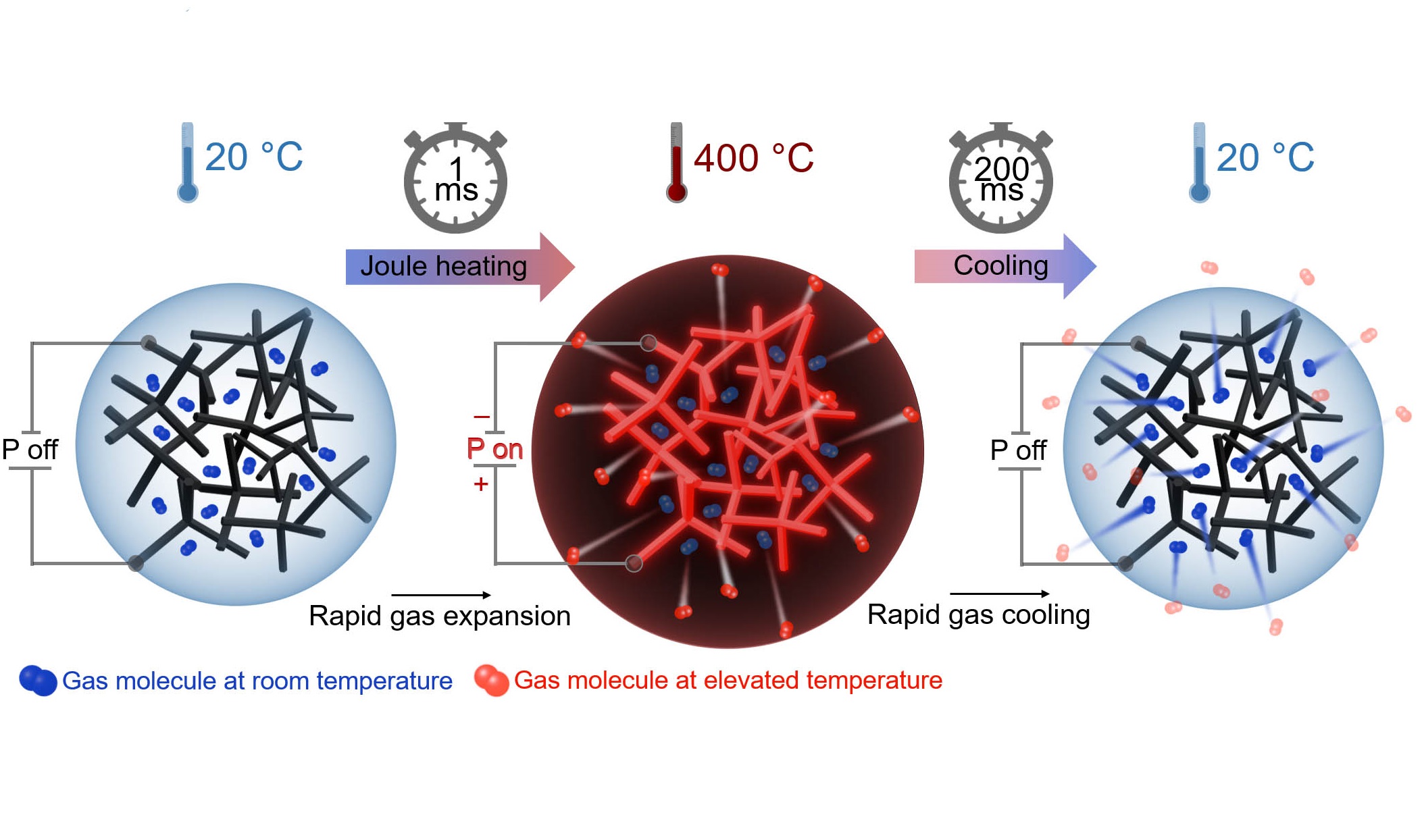 "In our experiments, we have found that aeromaterials made from graphene and other conductive nanomaterials, can be electrically heated extremely quickly with up to several hundred degrees per millisecond due to their low density," explains Dr. Fabian Schütt from CAU, who led and conducted the experiments together with Dr. Florian Rasch. To do so, the materials scientists used the "aerographene" aeromaterial, which consists of just a few layers of carbon atoms and 99.9% air. When heated, this air contained inside the material is also heated extremely quickly and expands. In the case of very rapid heating, there is an expansion in volume and one speaks of an "explosion." "This means we are now able to use aerographene to start small controllable and repeatable explosions that do not require a chemical reaction," says Schütt, summarizing their findings.