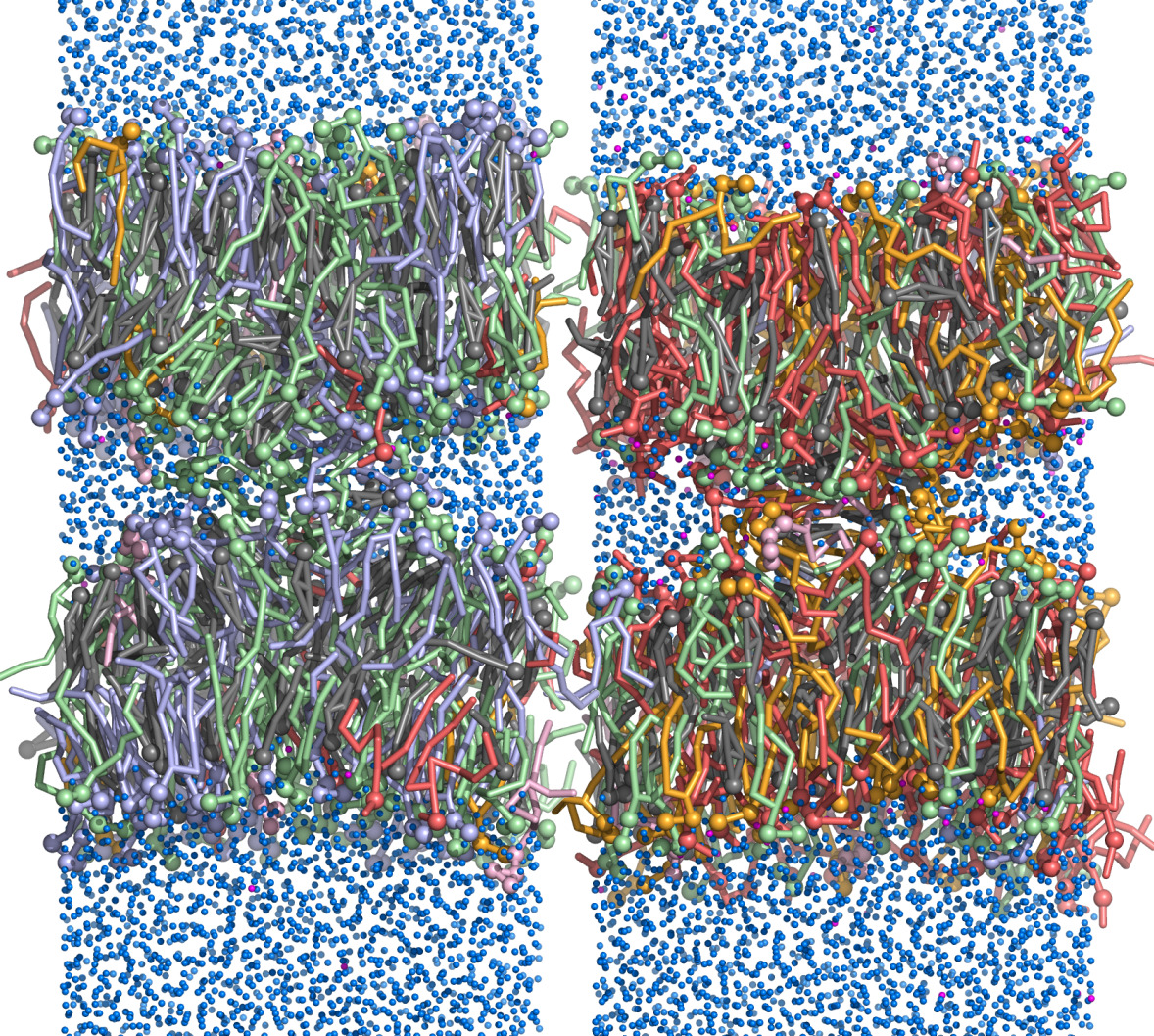 Dank der Effizienz ihrer Simulationsmethode konnten Hub und sein Team Stalk-Bildung unter circa 200 verschiedenen Bedingungen mit verschiedenen Lipidzusammensetzungen simulieren und somit bestimmen, welche Bestandteile der inneren Einzelschicht diese im Vergleich zur äußeren Einzelschicht so viel fusionsfreudiger machen.