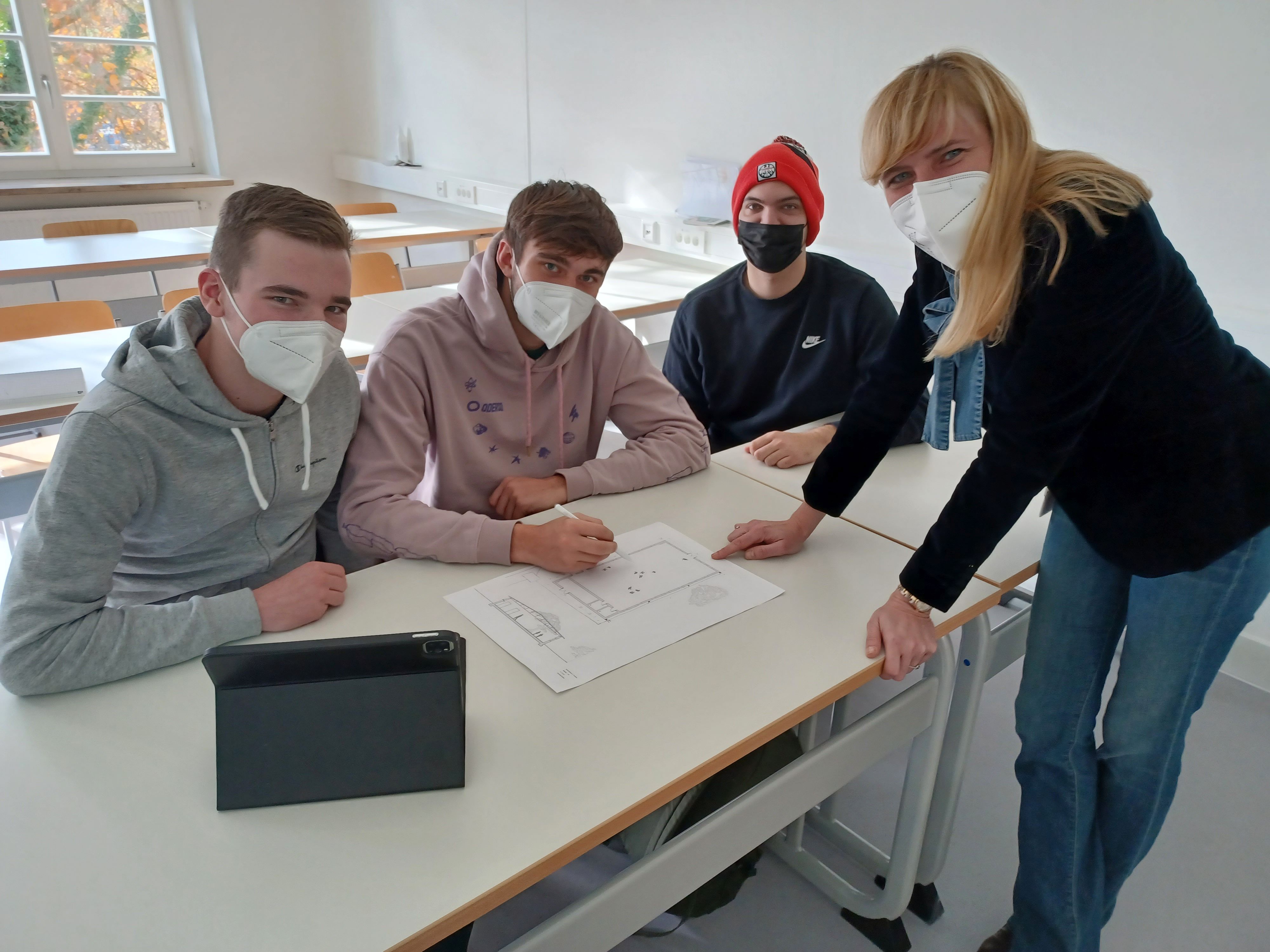 „Man entwickelt einen persönlichen Bezug zu dem Projekt“, nennt Student Maxi Gottschall einen der Vorteile, den das fächerübergreifende Konzept mit sich bringt. Immer wieder wird im Unterricht die Brücke geschlagen zu den deutschen Bauvorschriften, DIN-Normen, Baumaterialien und vielem mehr. Welche Fundamente gibt es und welches eignet sich am besten für das namibische Gemeindehaus? Wie dichtet man es am besten ab? Wie geht man mit Lehm als Bausubstanz um?