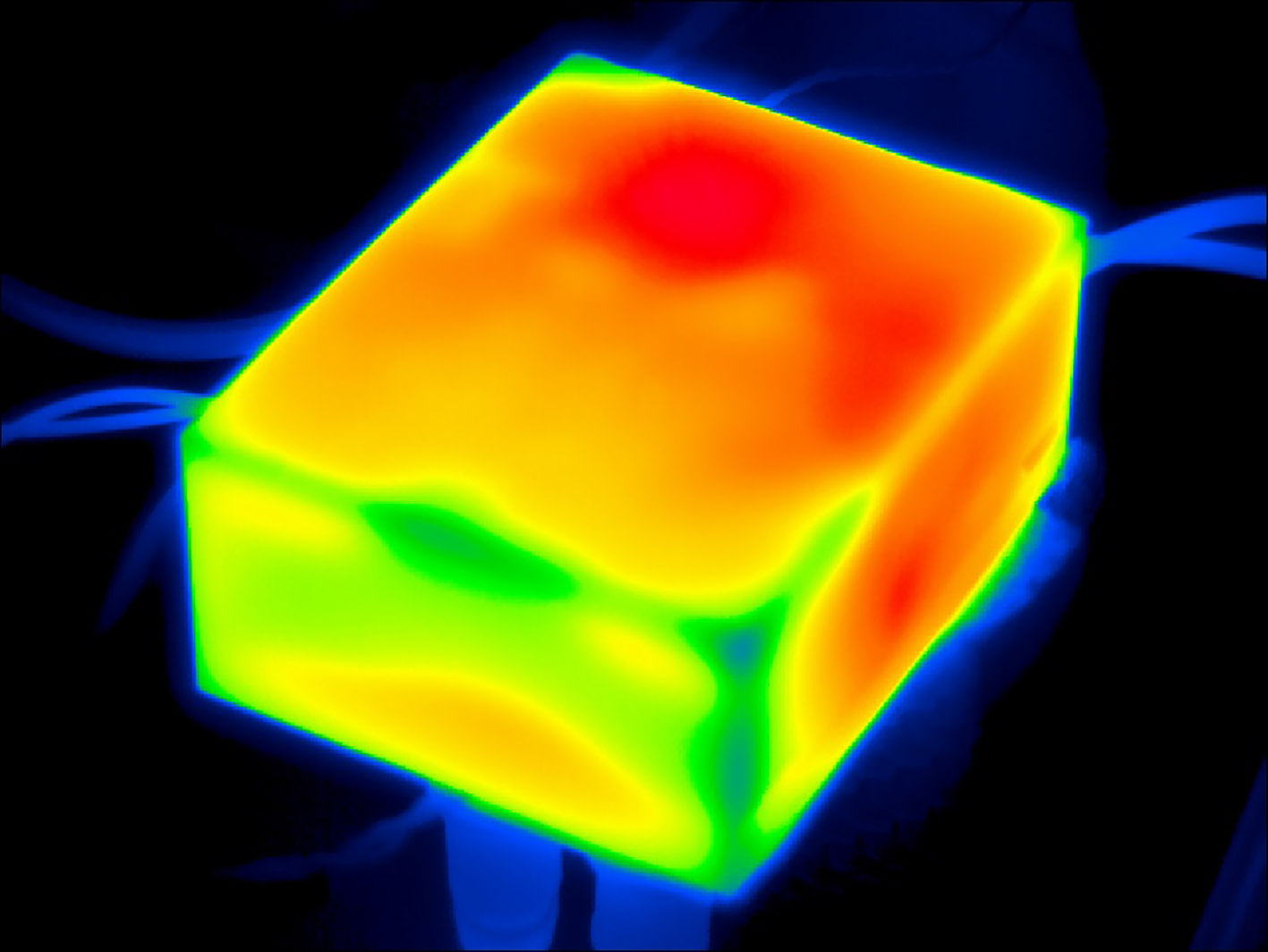 Im Betrieb darf das Ladegerät an keiner Stelle eine bestimmte Maximaltemperatur überschreiten. Zusätzlich muss es vollständig geschlossen sein – es wird also nur durch passive Konvektion gekühlt. Unter diesen Rahmenbedingungen muss die Effizienz der Schaltung, die die einphasige Netzspannung aus der Steckdose in eine Gleichspannung wandelt, mit Hilfe aufwändiger dreidimensionaler Simulationen berechnet werden. Dabei wird die Anordnung der Komponenten optimiert, um eine möglichst ideal verteilte Oberflächen-temperatur zu gewährleisten, aber gleichzeitig die elektrische Integrität beizubehalten und elektromagnetische Störungen zu vermeiden.