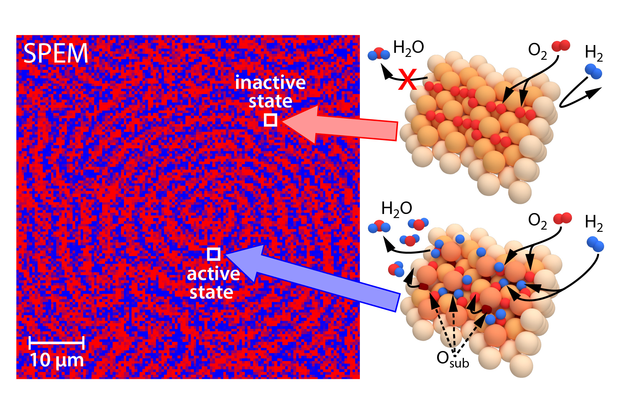 „Mit Hilfe von Katalysatoren wie dem Metall Rhodium kann man Wasserstoff oxidieren – das ist die entscheidende Reaktion in Brennstoffzellen, dabei entsteht als „Abgas“ nur Wasser “, sagt Prof. Yuri Suchorski vom Institut für Materialchemie der TU Wien. Wasserstoffmoleküle werden an der Rhodium-Oberfläche festgehalten und in einzelne Atome aufgespalten, die sich dann mit Sauerstoff zu Wasser verbinden.