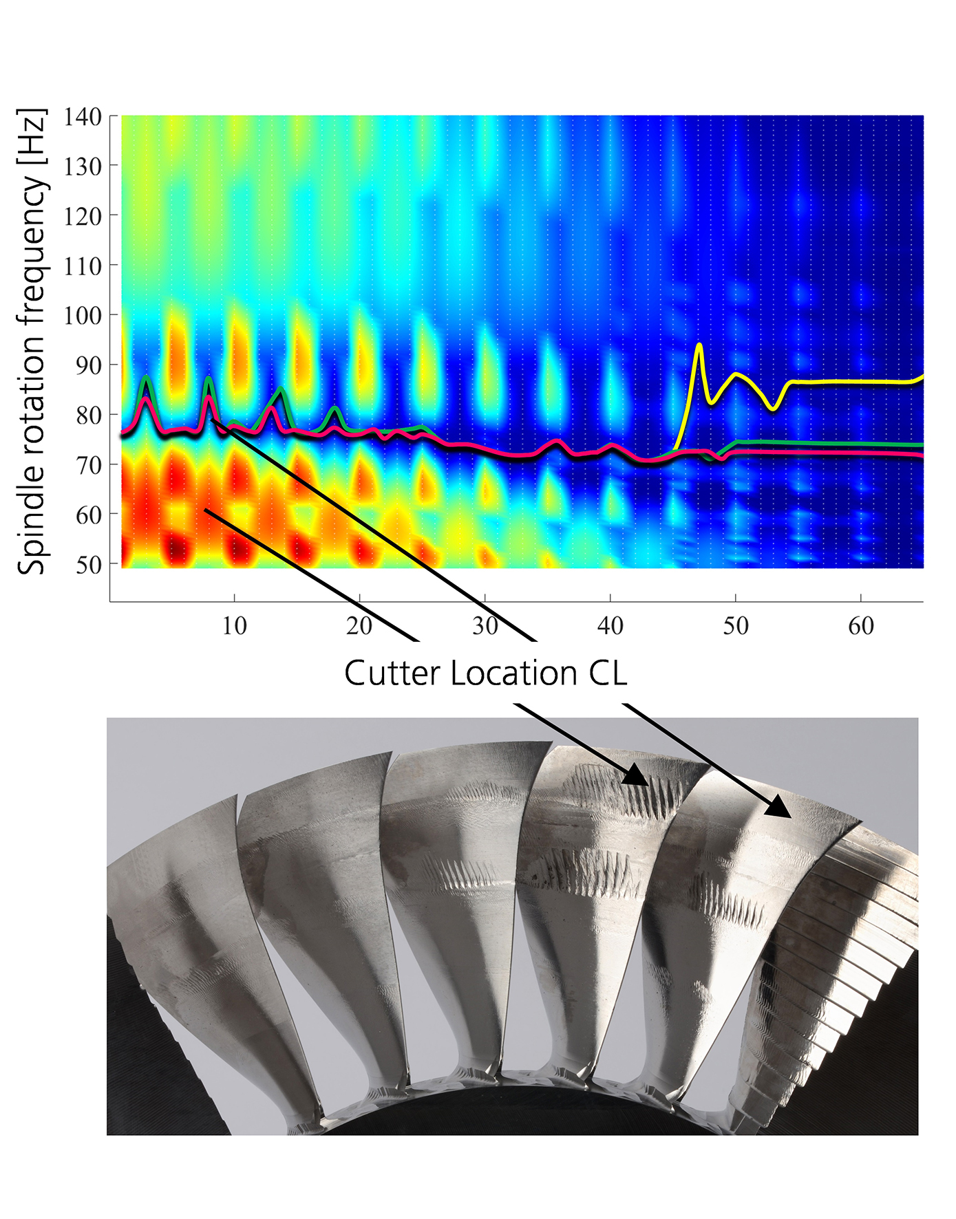 Nachdem sie erfolgreich die FE-Simulationen durchgeführt hatten, koppelten die Forscherinnen und Forscher diese Simulation mit der CAM-Software. Auf diese Weise schuf das Team eine voll automatisierte CAx-Software zur Ermittlung und Simulation der veränderlichen, dynamischen Werkstückeigenschaften. Darüber hinaus entwickelten sie auf Basis der Simulationen ein Stabilitätsdiagramm, mithilfe dessen sie, abhängig von Spindeldrehzahlen und Werkzeugpositionen, vorteilhafte und unvorteilhafte Bearbeitungsparameter für die Fräsbearbeitung identifizierten.