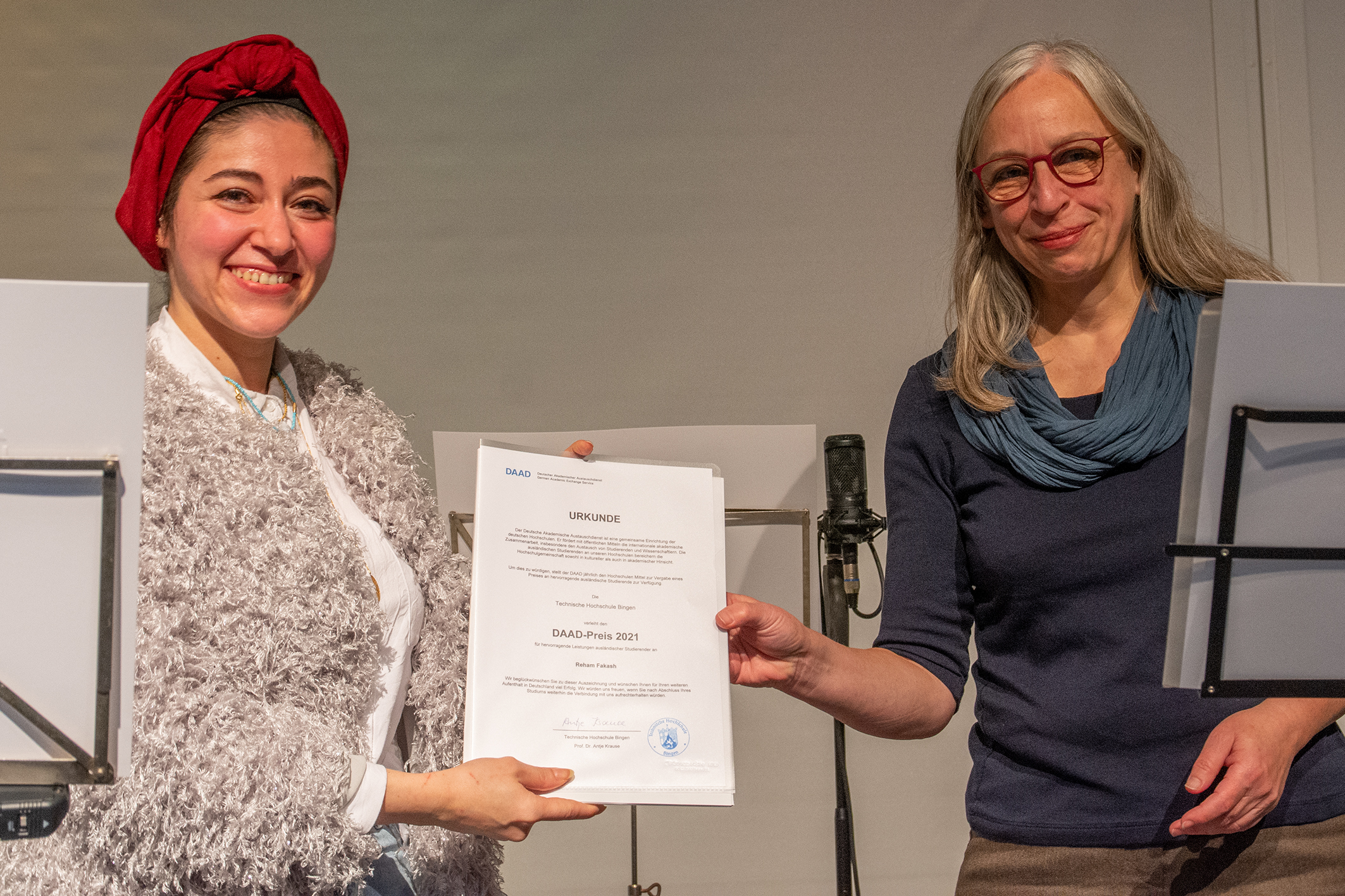 Mit dem Preis des Deutschen Akademischen Auslandsdienstes (DAAD) etwa wurde Reham Fakash ausgezeichnet. Die gebürtige Syrerin hat im Rahmen des Integra-Programms ihr Studium an der TH Bingen begonnen und in diesem Jahr ihren Abschluss im Masterstudiengang Landwirtschaft und Umwelt abgelegt. Der Preis würdigt ihre sehr guten akademische Leistungen, ihre sprachliche Entwicklung, ihre gute Integration und ihren Ehrgeiz. Auch im Namen der Kirner Bürkle-Stiftung wurde zwei Preise verliehen. Die mit je 2500 Euro dotierten Ehrungen ging an Jonas Malz für seinen Masterabschluss im Studiengang Prozesstechnik und an Nils Fröba für seinen Abschluss im Masterstudiengang Maschinenbau. Insgesamt drei Preise à 500 Euro vergab die Gesellschaft der Freunde der Hochschule (GdF). Lukas Liebelt, Absolvent des Masterstudiengangs Elektrotechnik erhielt gleich zwei Preise: Einen vom Verein Deutscher Ingenieure (VDI) und daneben den Alfred-Trossen-Förderpreis, der im Auftrag der gleichnamigen Stiftung an der TH Bingen vergeben wird. Neben dem Georg-Meyer-Preis gehört der Afred-Trossen-Preis zu den Auszeichnungen, die ausschließlich an der TH Bingen verliehen werden.